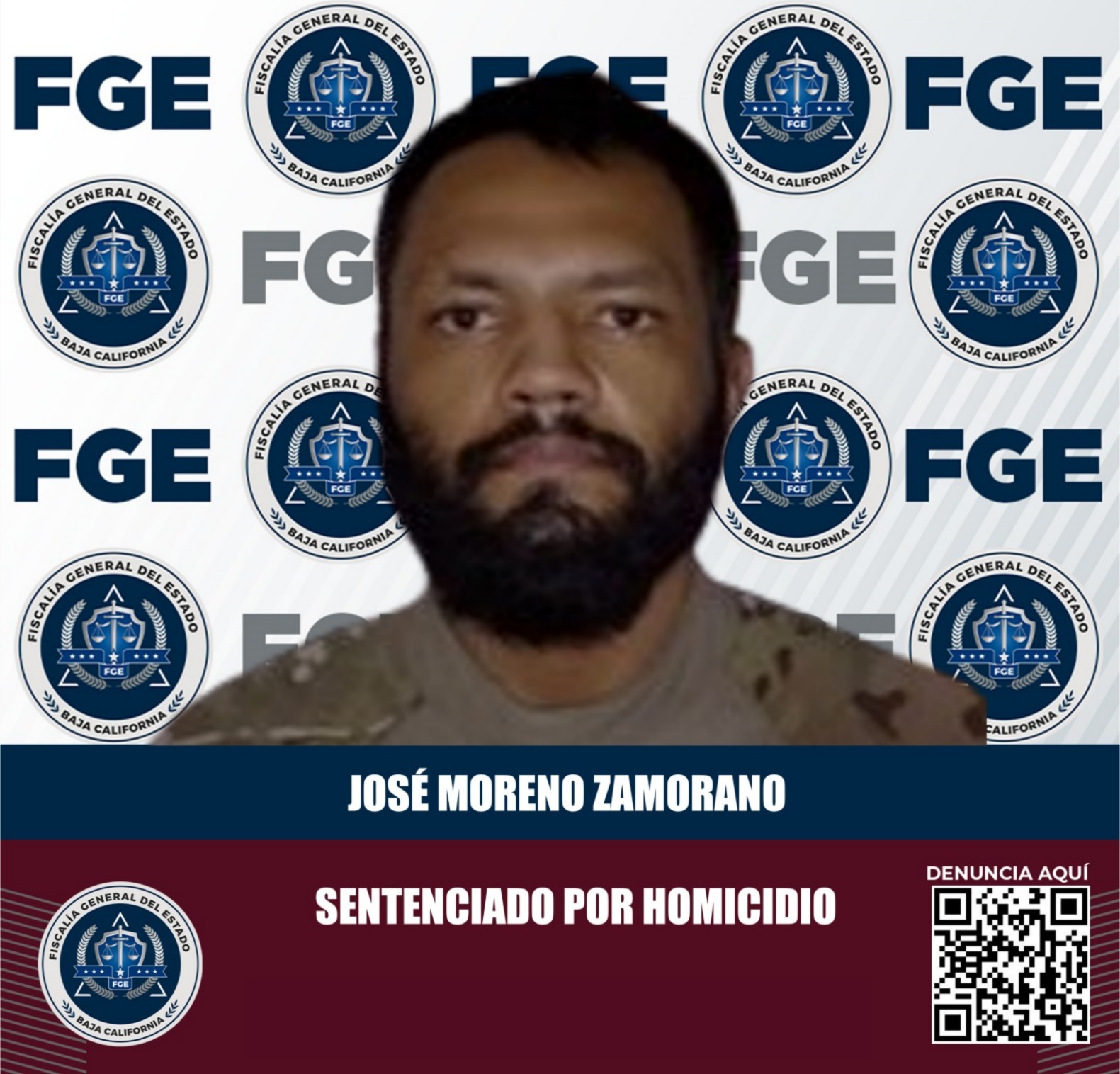 MEXICALI, BAJA CALIFORNIA. - La Fiscalía General del Estado, logró con base a los elementos de prueba presentados, una sentencia de 24 años de prisión contra José Moreno Zamorano, acusado del delito de homicidio calificado.