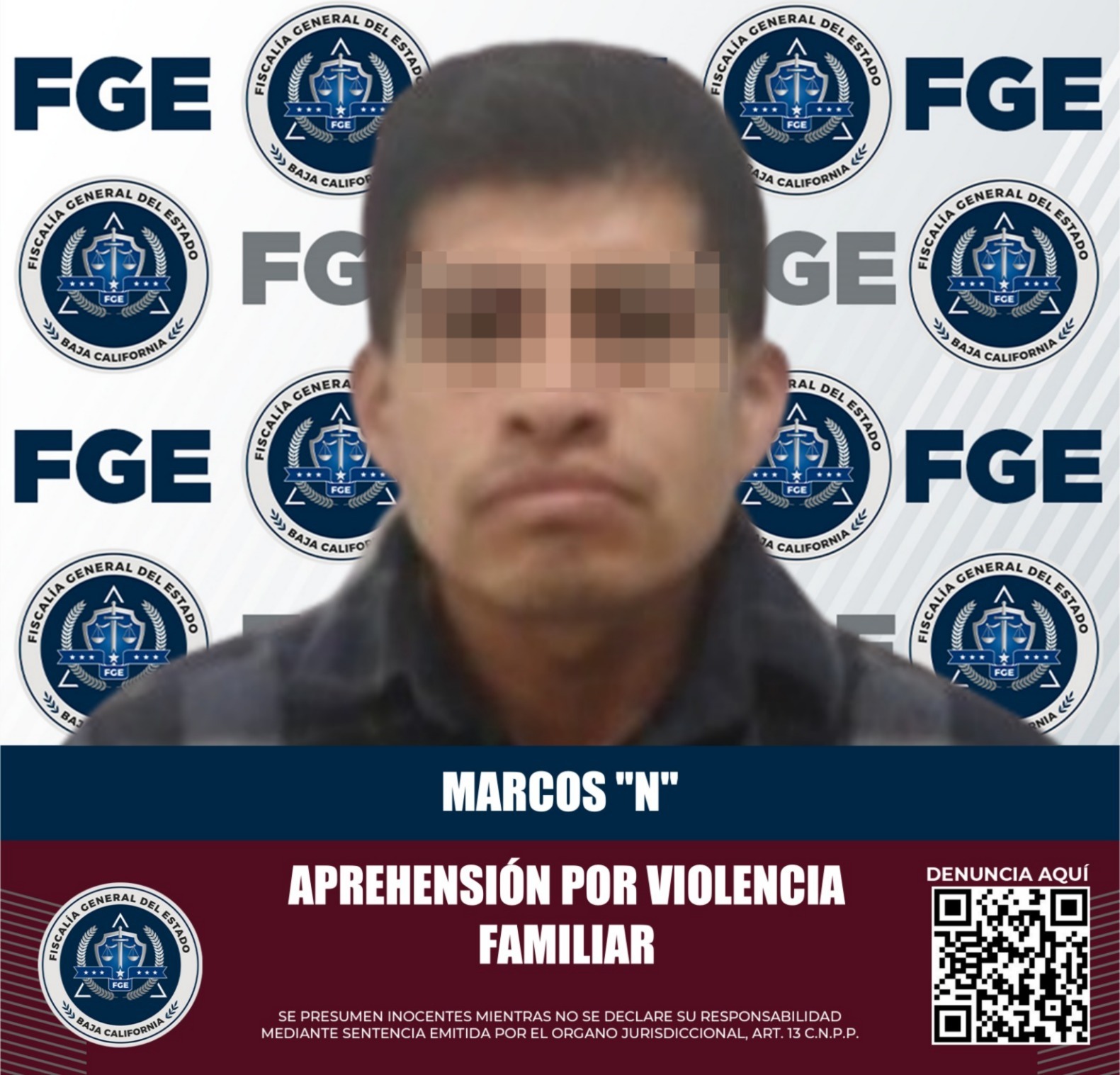 TECATE, BAJA CALIFORNIA. - La Fiscalía Regional de Tecate, a través de la Unidad de Investigación con Detenido, logró la captura de Marcos “N” por el delito de violencia familiar. Esta detención se realizó en cumplimiento de un mandamiento judicial emitido en su contra, luego de que incumpliera con la medida cautelar previamente impuesta.