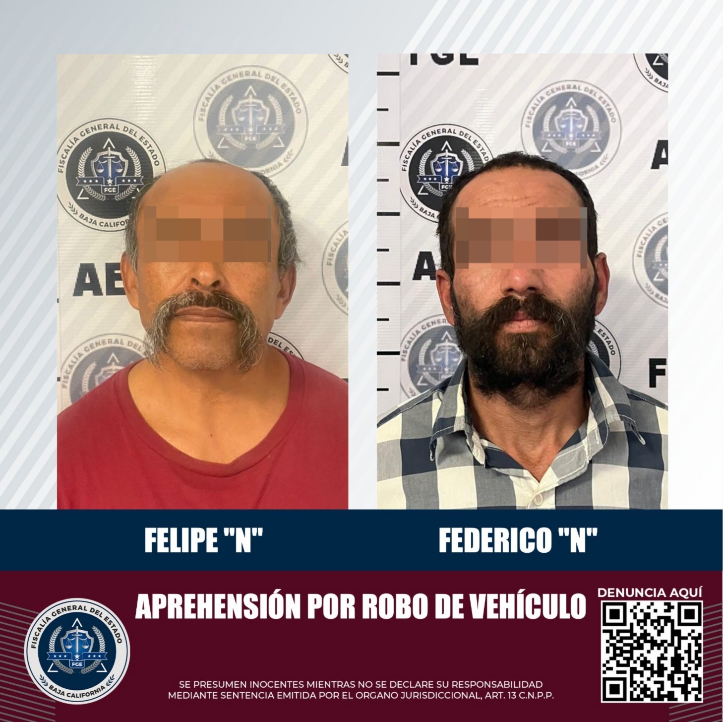 TIJUANA, BAJA CALIFORNIA. - Tras efectuar labor de investigación, agentes de la Fiscalía General del Estado aprehendieron a dos hombres que, en asuntos por separado, son investigados por el delito de robo equiparado de vehículo.