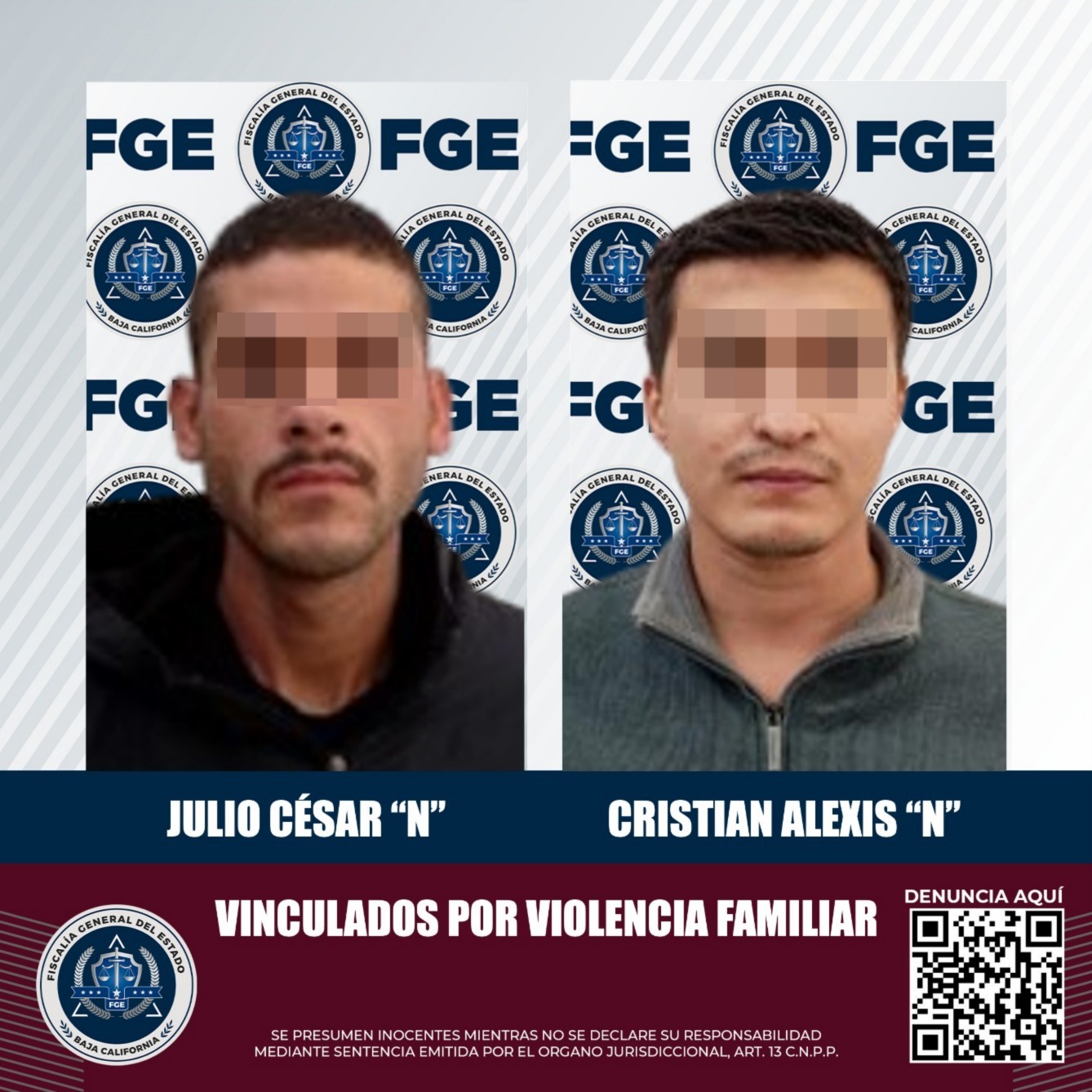 MEXICALI, BAJA CALIFORNIA. - Con base a los elementos probatorios presentados por la Fiscalía Regional de Mexicali, a través de la Unidad de Investigación con Detenidos Poniente, dos hombres acusados de ejercer violencia contra integrantes de su familia fueron vinculados a proceso.