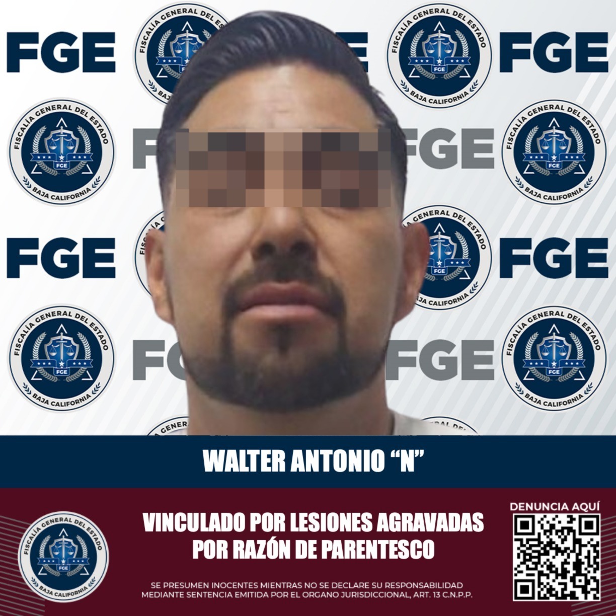 TIJUANA BAJA CALIFORNIA. - La Fiscalía Regional de Tijuana en coordinación con la Unidad de Investigación con Detenido, consiguió la vinculación a proceso de Walter Antonio “N”, por un señalamiento en su contra por lesiones agravadas por razón de parentesco, y violencia familiar.