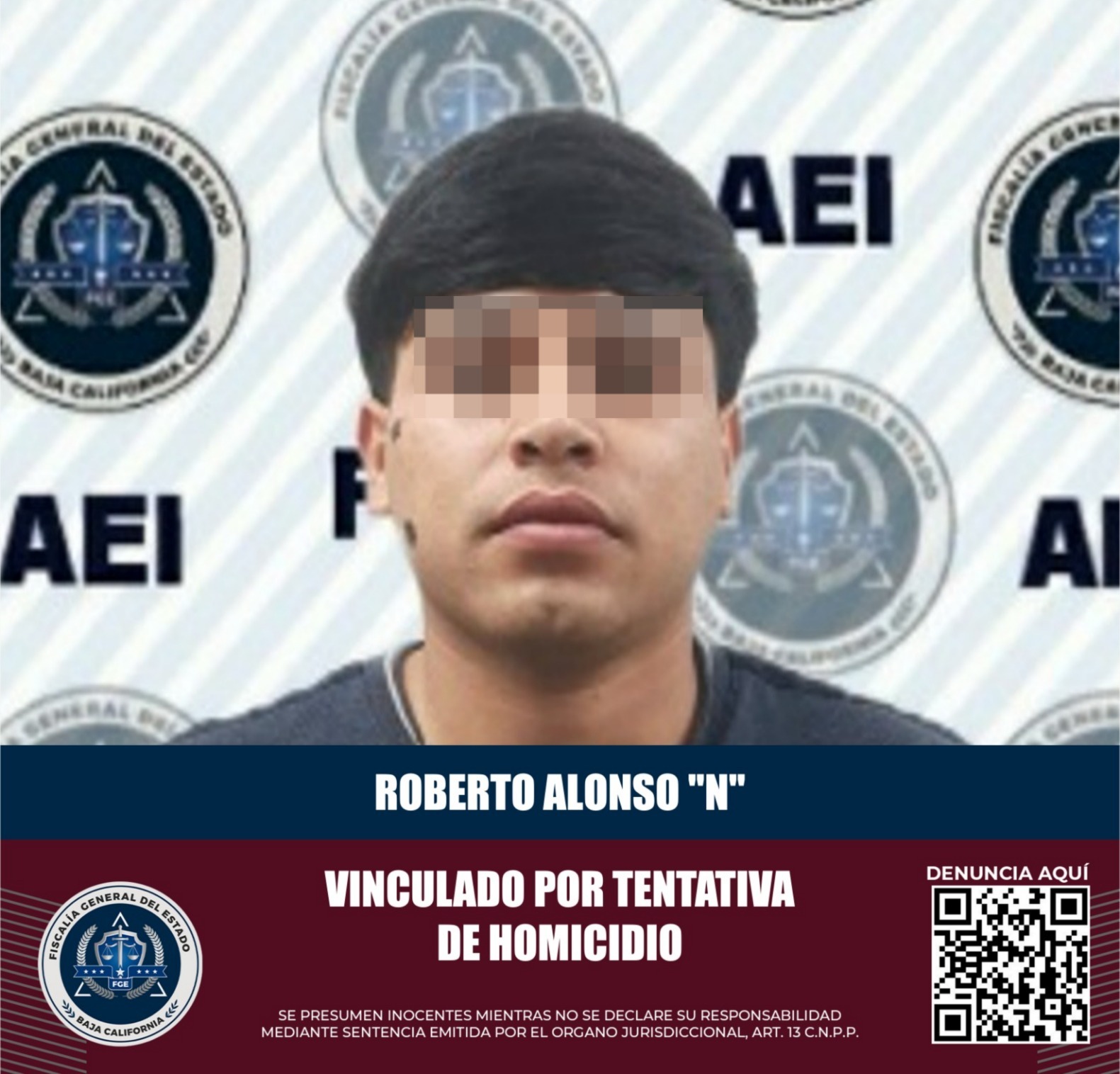 TIJUANA, BAJA CALIFORNIA. - Gracias al trabajo de la Fiscalía Especializada en Delitos Contra la Vida, se obtuvo la vinculación a proceso de Roberto Alonso “N”, por su presunta participación en el delito de homicidio calificado en grado de tentativa. El Juez de Control impuso la medida cautelar de prisión preventiva justificada, y otorgó un plazo de tres meses para la investigación complementaria.