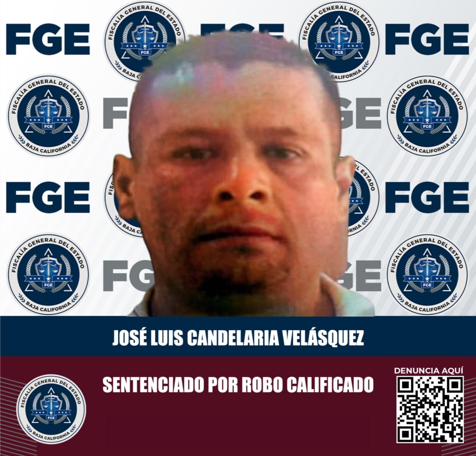 TIJUANA, BAJA CALIFORNIA. - Tras una investigación realizada por la Fiscalía Regional de Tijuana, se obtuvo una sentencia de 7 años 3 meses de prisión contra José Luis Candelaria Velásquez por su participación en el delito de robo calificado en vivienda, ejecutado por varias personas con violencia.