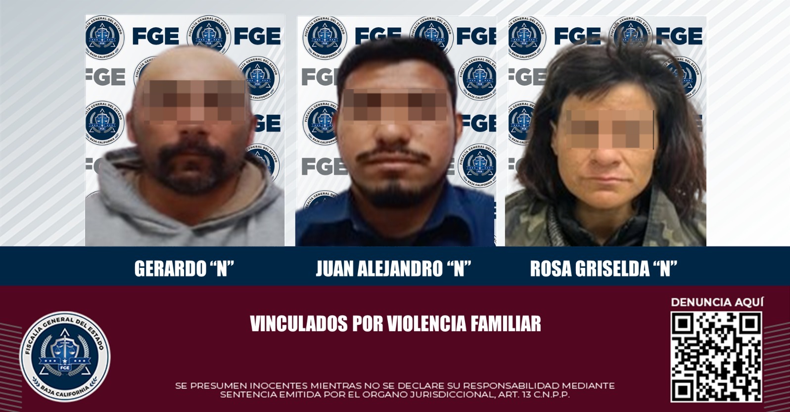 MEXICALI, BAJA CALIFORNIA. - La Fiscalía Regional de Mexicali, a través de la Unidad de Investigación Foránea de Guadalupe Victoria, logró, con base en las pruebas y argumentos presentados, la vinculación a proceso de tres imputados por el delito de violencia familiar.