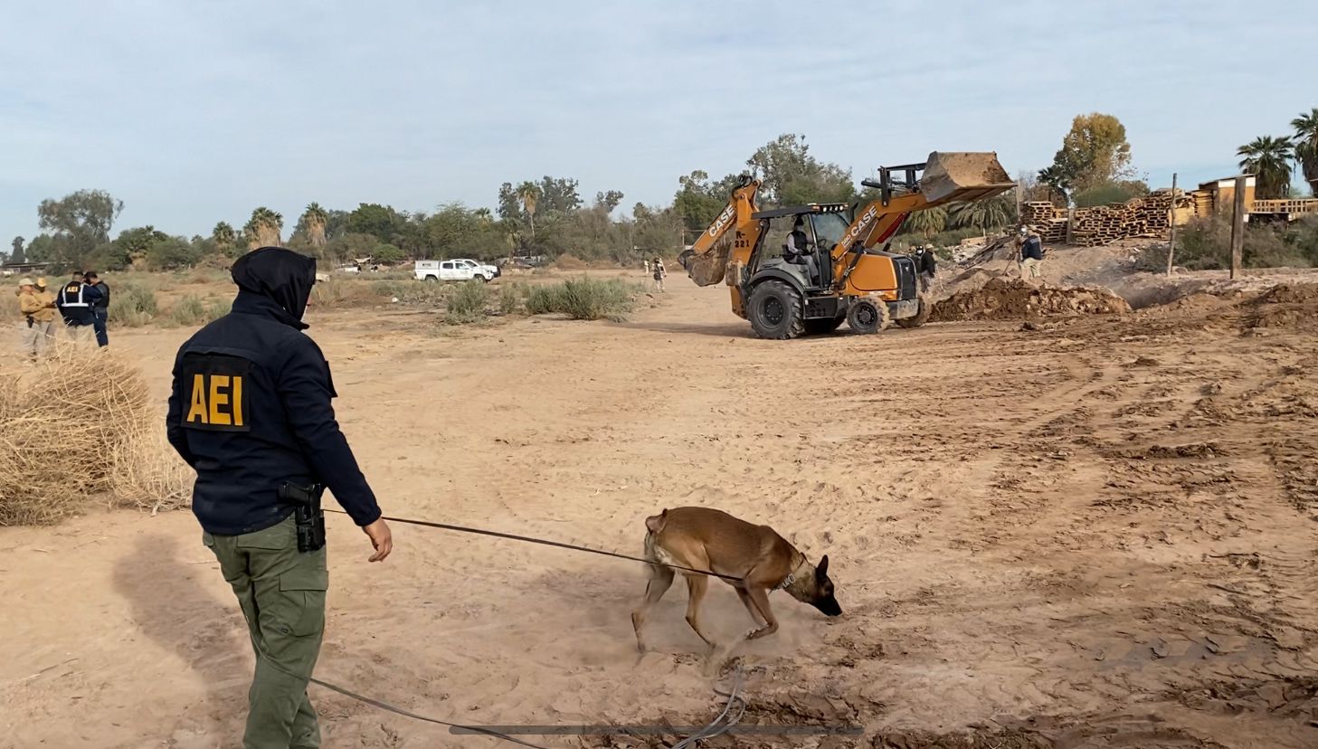 MEXICALI, BAJA CALIFORNIA. - En un esfuerzo coordinado, personal de la Fiscalía General del Estado llevó a cabo trabajos de exploración de campo en la colonia La Pluma.