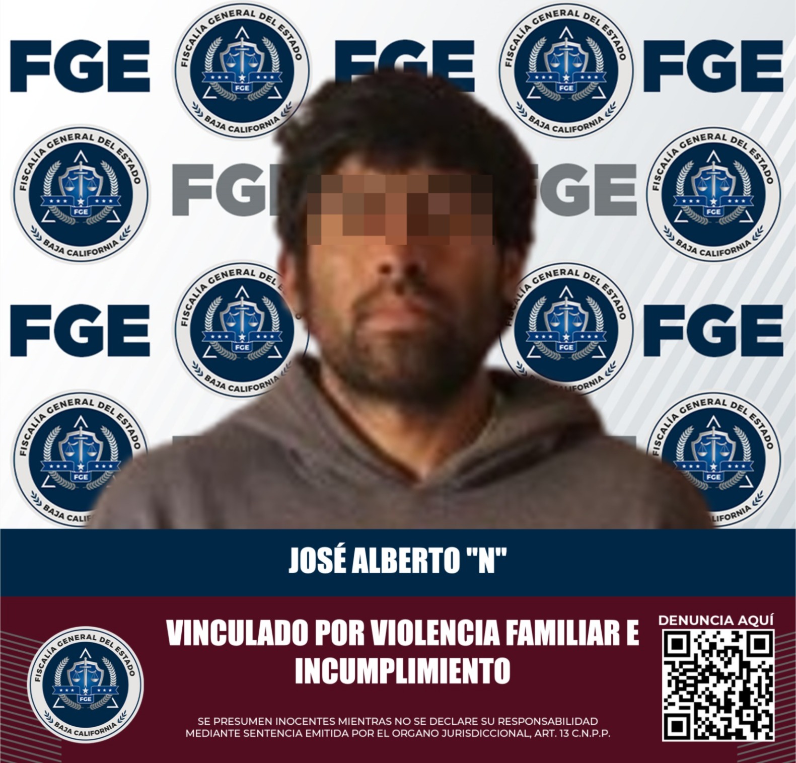 ENSENADA, BAJA CALIFORNIA. - La Fiscalía Regional de Ensenada logró vincular a proceso a un hombre identificado como José Alberto "N" por dos delitos: violencia familiar e incumplimiento de obligaciones de asistencia familiar.
