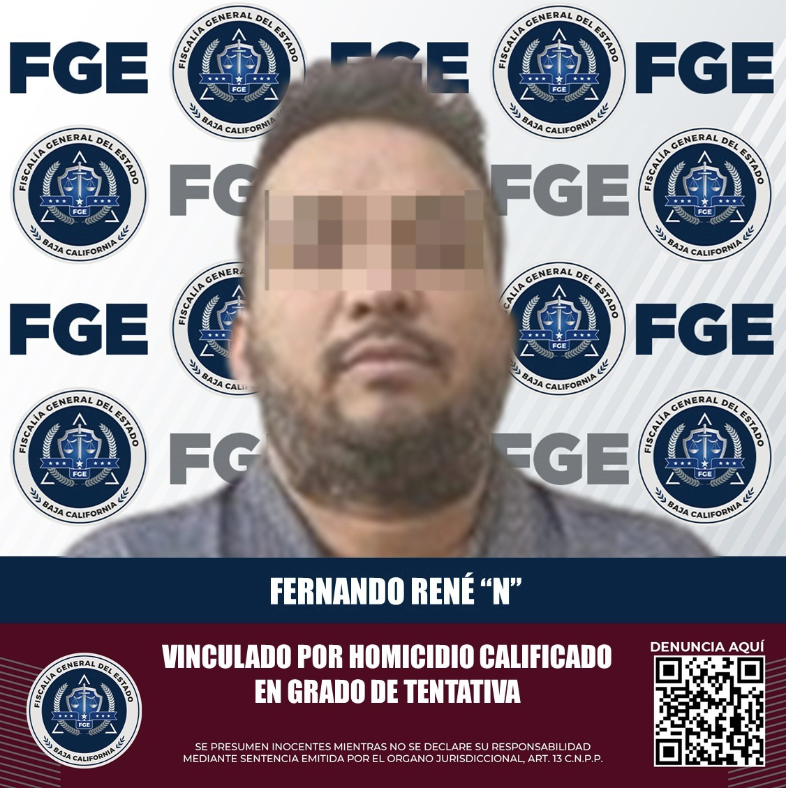 MEXICALI, BAJA CALIFORNIA. - La Fiscalía Regional de Mexicali, a través de la Unidad de Investigación con Detenidos Poniente, obtuvo auto de vinculación a proceso en contra de un hombre por el delito de homicidio calificado por ventaja en grado de tentativa.