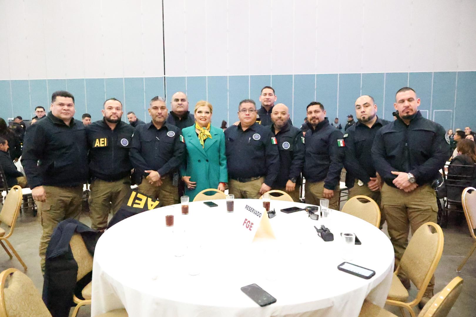 En un evento dedicado a los elementos de seguridad pública, la Fiscal General, Dra. Ma. Elena Andrade Ramírez, en compañía de la Gobernadora Marina del Pilar Avila Olmeda, aseguró que el trabajo de nuestros agentes es esencial para el fortalecimiento de la justicia y la tranquilidad en Baja California. Reconoció la labor de cada uno de los asistentes, quienes se enfrentan a situaciones complejas y, en muchos casos, peligrosas, sin embargo, demuestran cada día su profesionalismo, valentía y dedicación.