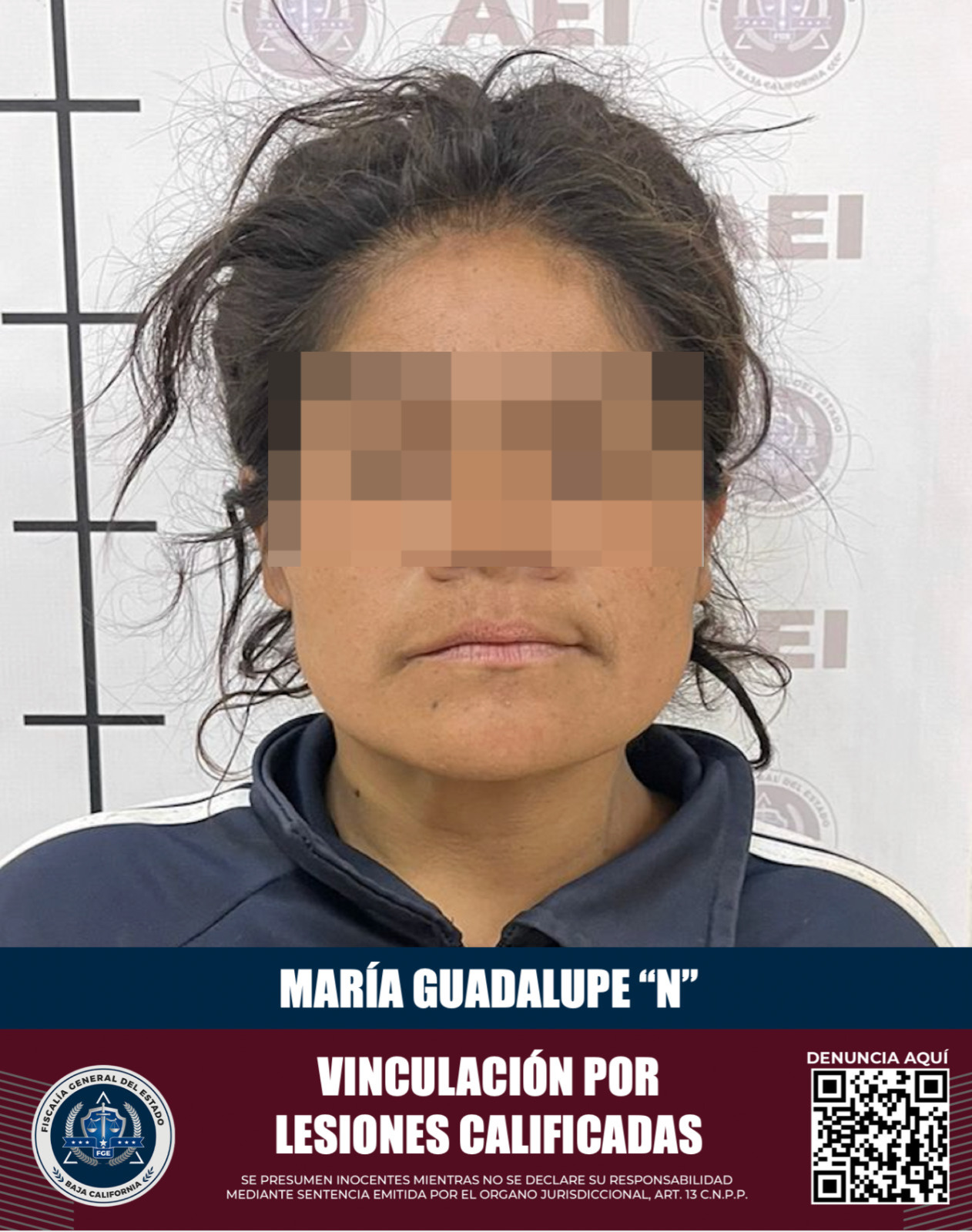 SAN QUINTÍN, BAJA CALIFORNIA. - La Fiscalía Regional de San Quintín obtuvo la vinculación a proceso de María Guadalupe “N”, acusada de lesiones calificadas tras una agresión ocurrida en un establecimiento comercial de la localidad, en agravio de otra mujer.