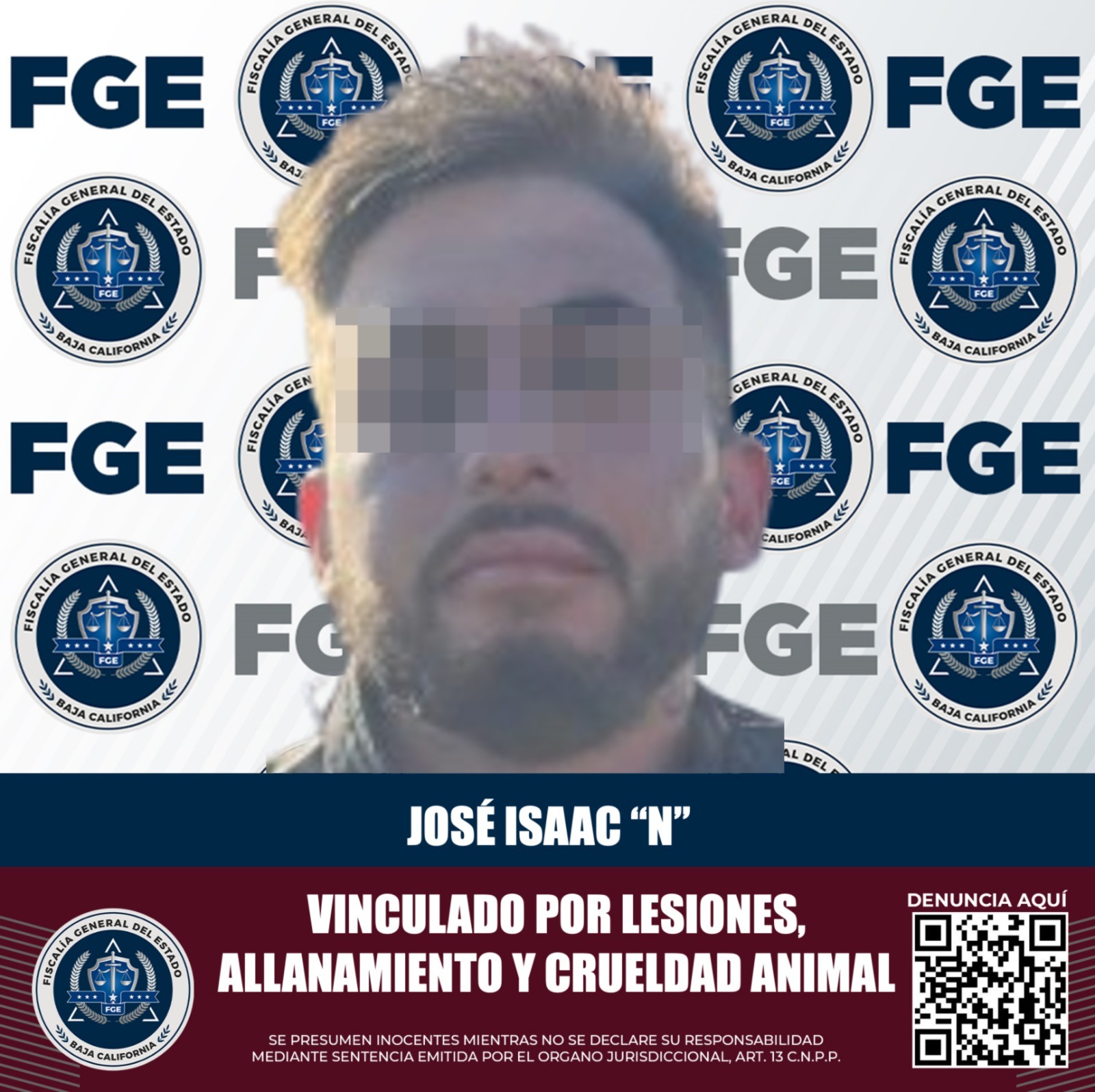 TIJUANA, BAJA CALIFORNIA. - La Fiscalía Regional de Tijuana a través de la unidad de investigación con detenido y la Fiscalía Especializada en Delitos Ambientales y Contra los Animales, lograron obtener la vinculación a proceso de un hombre señalado por los delitos de crueldad animal, lesiones y allanamiento.
