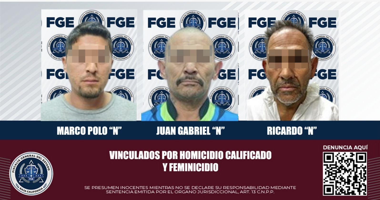 MEXICALI, BAJA CALIFORNIA. - La Fiscalía General del Estado, a través de la Fiscalía Especializada en Homicidios, logró la vinculación a proceso de tres personas involucradas en los delitos de homicidio calificado y feminicidio, ocurridos durante la última semana de diciembre de 2024.