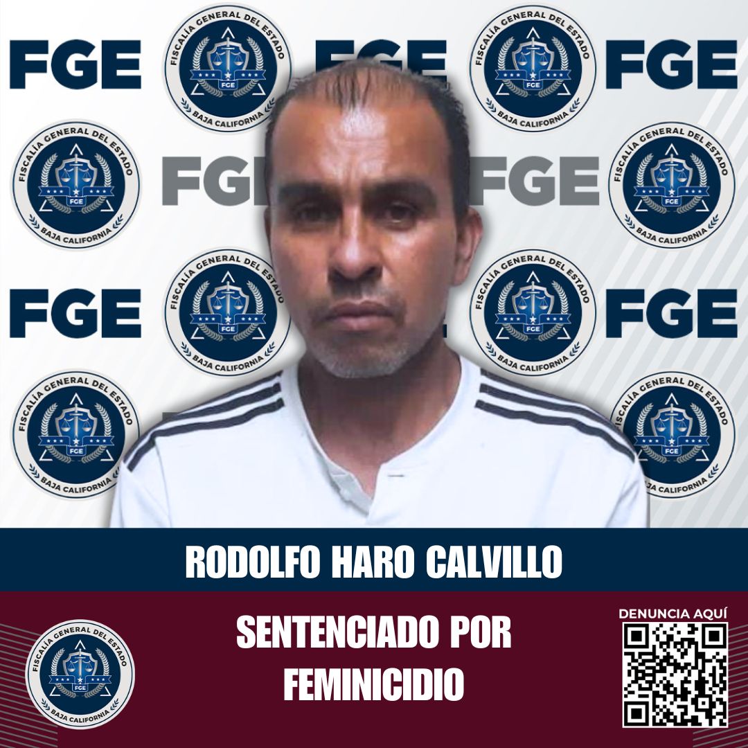 ENSENADA, BAJA CALIFORNIA. - La Fiscalía Regional de Ensenada, a través de la coordinación de Averiguaciones Previas y Control de Procesos, logró una sentencia condenatoria de 46 años, 3 meses y 472 días de multa contra Rodolfo Haro Calvillo, culpable del asesinato de su pareja sentimental en un caso de feminicidio.