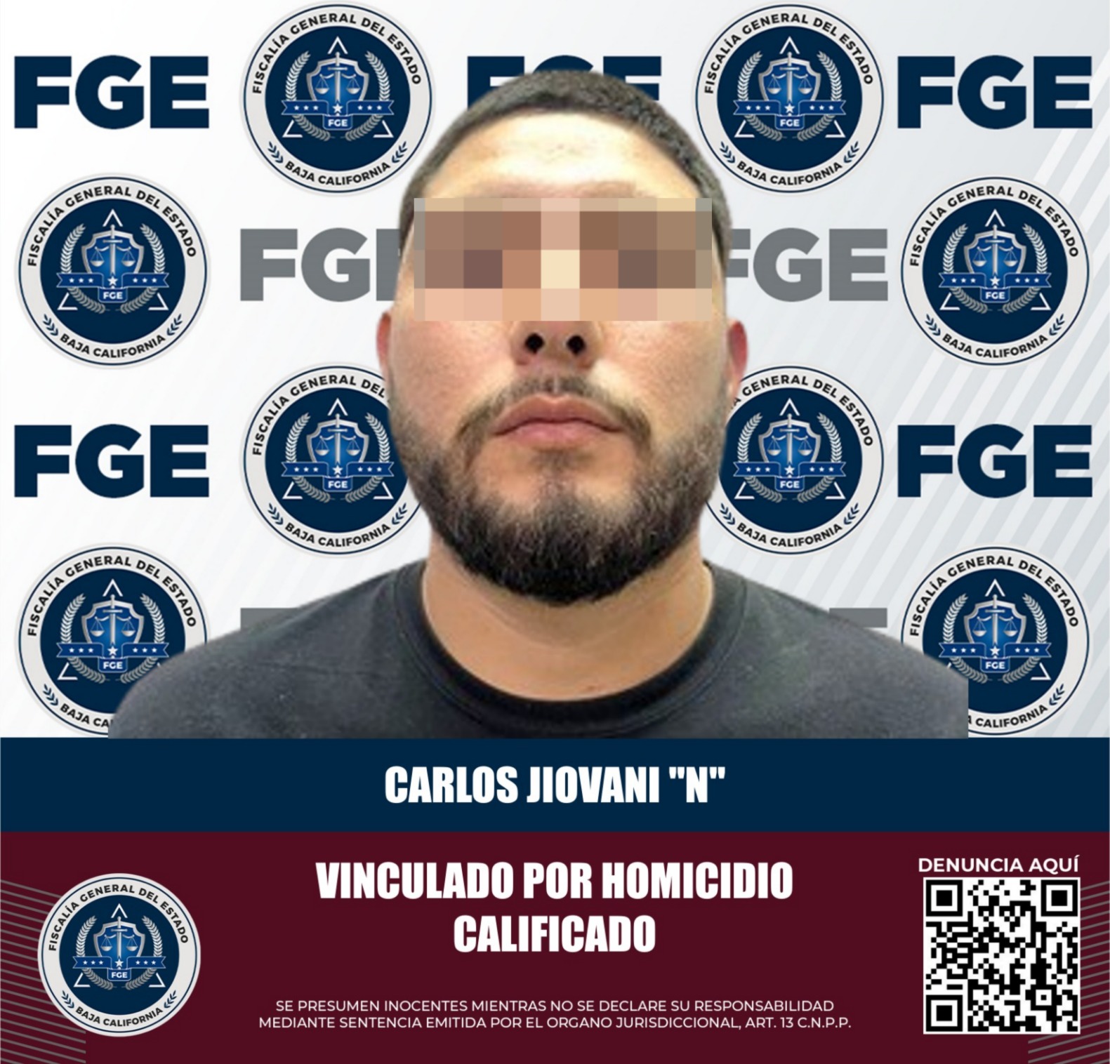 MEXICALI, BAJA CALIFORNIA. - La Fiscalía General del Estado logró la vinculación a proceso de Carlos Jiovani “N”, presunto responsable de un homicidio calificado registrado en el Valle de Mexicali el 27 de enero de 2024.