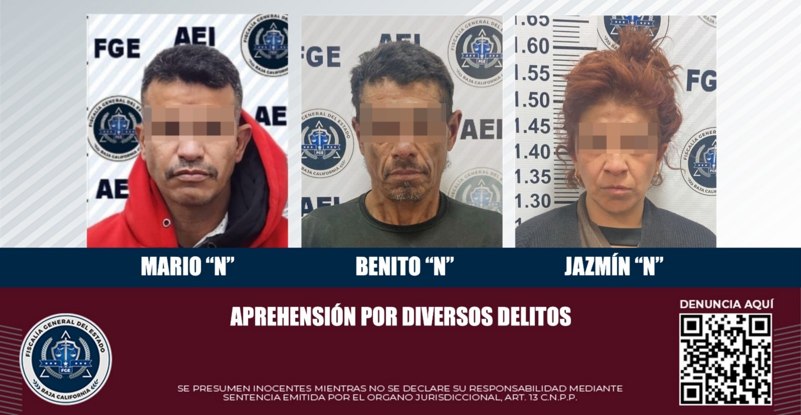 TIJUANA, BAJA CALIFORNIA. - La Fiscalía General del Estado a través de la Agencia Estatal de Investigación Zona Tijuana, informa sobre la cumplimentación de tres órdenes de aprehensión, una relacionada con el delito de robo con violencia y dos por robo de vehículo en diferentes modalidades, logradas entre los días 6 y 9 de enero de 2025.