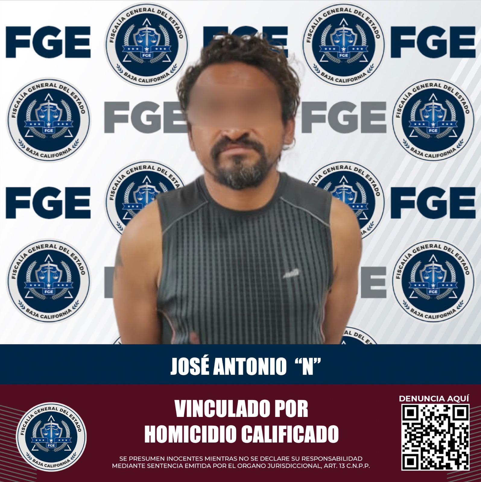 ENSENADA, BAJA CALIFORNIA. - La Fiscalía General del Estado (FGE) logró la vinculación a proceso y la medida cautelar de prisión preventiva contra José Antonio “N”, señalado como el presunto autor del homicidio calificado con ventaja de un varón cuya identidad se investiga.
