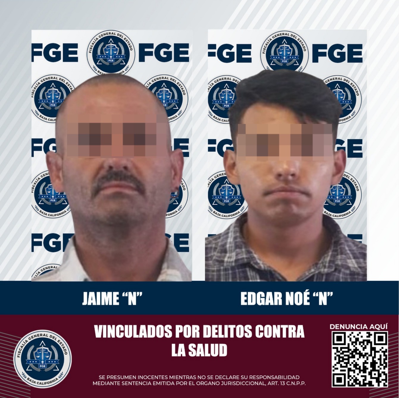 TECATE, BAJA CALIFORNIA. - La Fiscalía Regional de Tecate, informa que se obtuvo la vinculación a proceso de dos individuos quienes fueron detenidos en flagrancia, como resultado de un operativo conjunto con la Secretaría de la Defensa Nacional (SEDENA) y la Dirección de Seguridad Ciudadana y Tránsito Municipal.