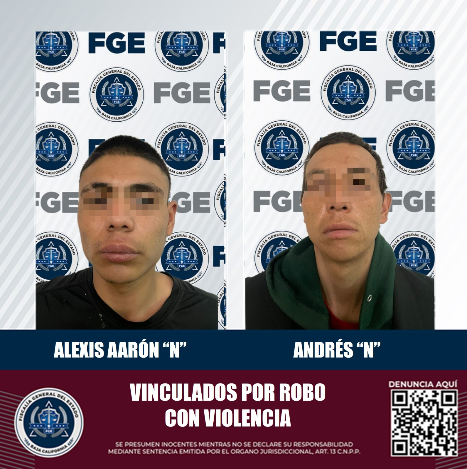 MEXICALI, BAJA CALIFORNIA. - La Fiscalía Regional de Mexicali a través de la Unidad de Investigación de Delitos con Detenidos Oriente obtuvo la vinculación a proceso de dos sujetos acusados de un hurto con violencia una tienda de autoservicio.