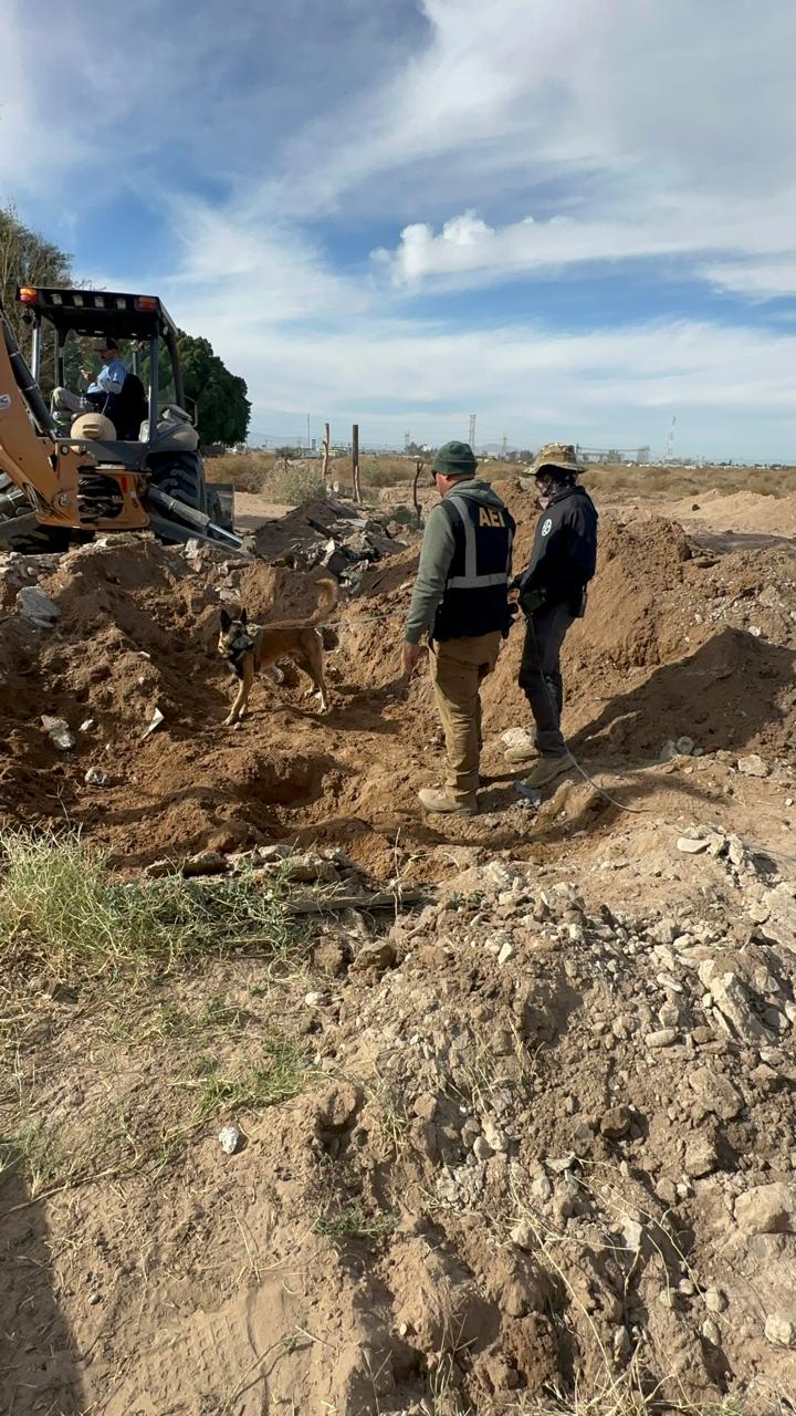 Ese mismo día, la Unidad de Desaparecidos llevó a cabo una búsqueda generalizada en la zona desértica al sur de la carretera a Tijuana, cerca de las albercas Los Manantiales y la Laguna Salada. El equipo de búsqueda recorrió cuadrantes en áreas despobladas y realizó inspecciones en zonas productivas o de interés donde pudieran haberse causado alteraciones en el suelo, como excavaciones o cambios en la coloración de la tierra.
