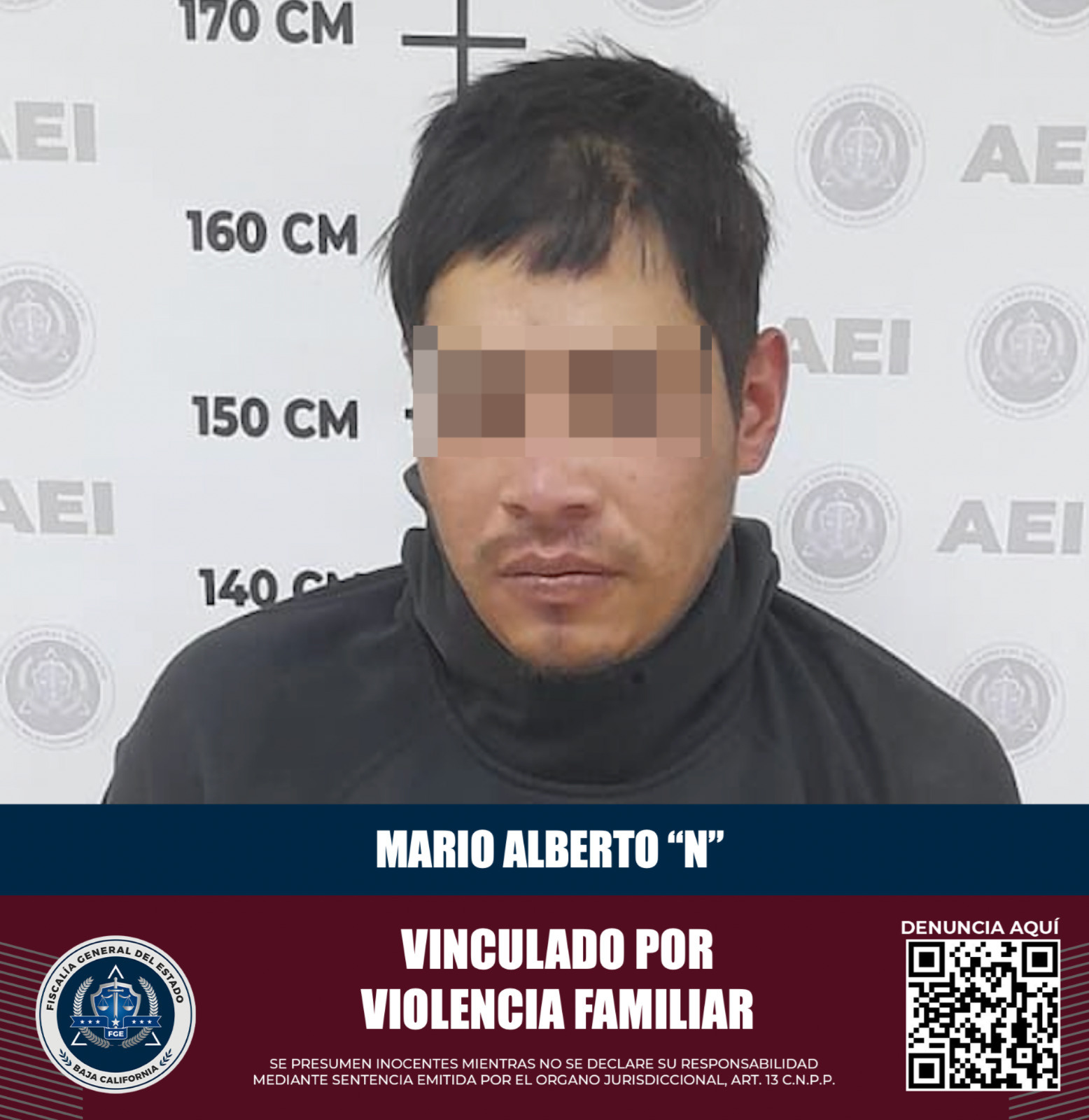 SAN QUINTÍN, BAJA CALIFORNIA. - La Fiscalía Regional de San Quintín logró la vinculación a proceso de Mario Alberto “N”, por el delito de violencia familiar, cuya detención sucedió el 17 de enero del presente año tras presuntamente agredir a una mujer.