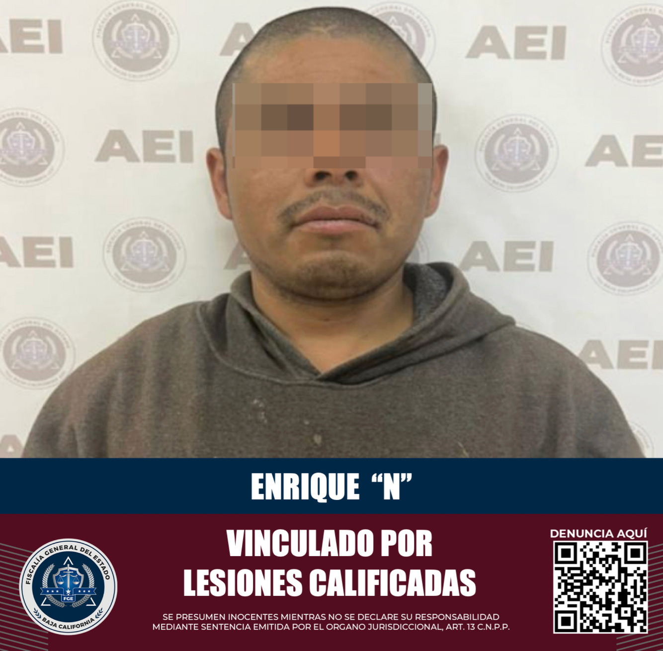 SAN QUINTÍN, BAJA CALIFORNIA. - La Fiscalía Regional de San Quintín informa sobre la vinculación a proceso de Enrique “N” por el delito de lesiones calificadas, tras un incidente ocurrido el 6 de abril de 2024.