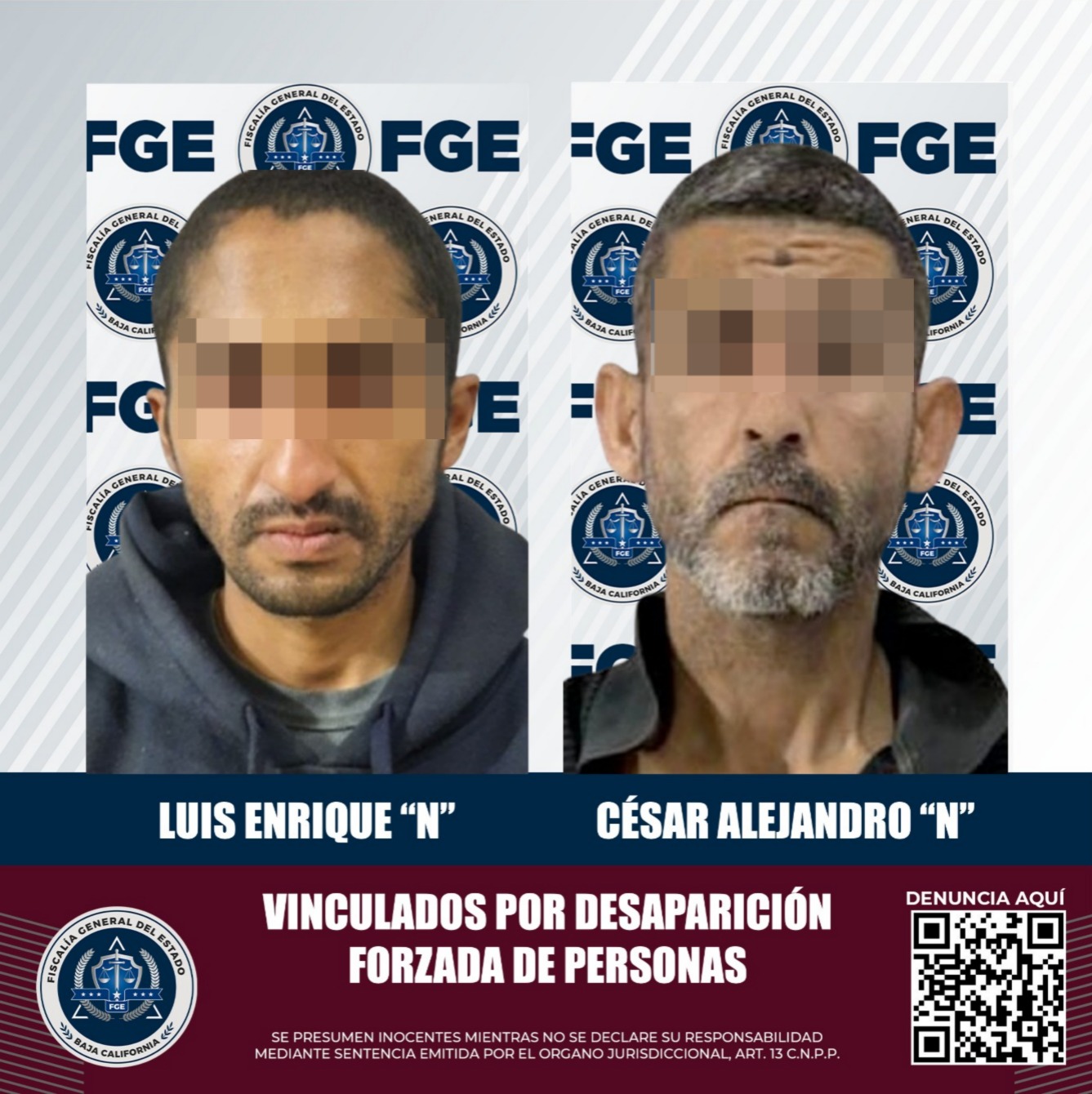 TIJUANA, BAJA CALIFORNIA. - La Fiscalía General del Estado, a través de la Fiscalía Especializada en Delitos Contra la Vida, logró dejar en prisión preventiva a dos masculinos, por los delitos vinculados en materia de desaparición forzada de personas y desaparición cometida por particulares bajo la modalidad de ocultar un cadáver.