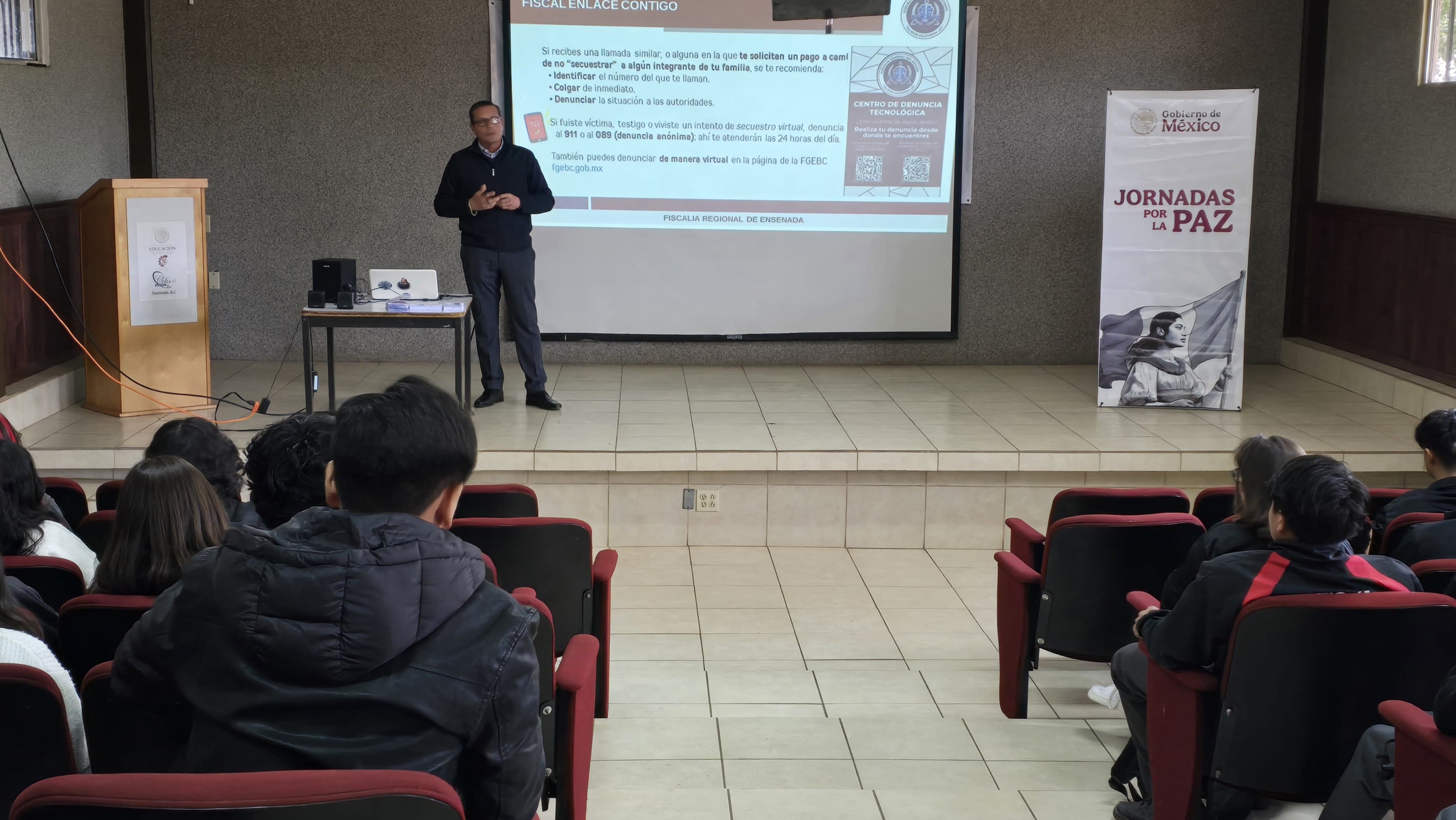 ENSENADA, BAJA CALIFORNIA. - La Fiscalía Regional de Ensenada se acercó a los estudiantes de la Preparatoria CBTIS 41 durante la Jornada por la Paz realizada el pasado 22 de enero, que reunió a diversas autoridades, quienes dialogaron de manera directa con los alumnos sobre temas de gran relevancia para nuestra comunidad.