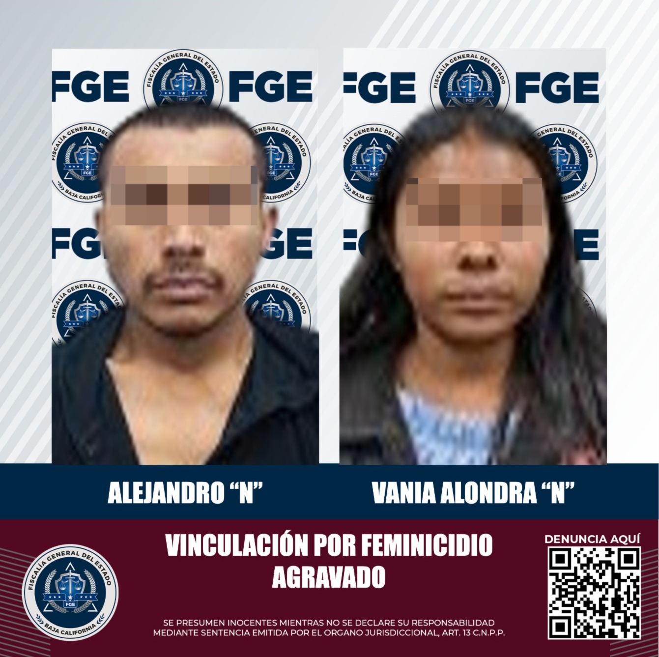 TIJUANA, BAJA CALIFORNIA. - La Fiscalía General del Estado (FGE), a través de la Fiscalía Especializada en Delitos Contra la Vida, informa sobre la obtención de la vinculación a proceso en contra de Alejandro “N” y Vania Alondra “N” por el delito de feminicidio agravado, tras una exhaustiva investigación que demuestra el compromiso de esta institución con la justicia y la protección de las personas más vulnerables.