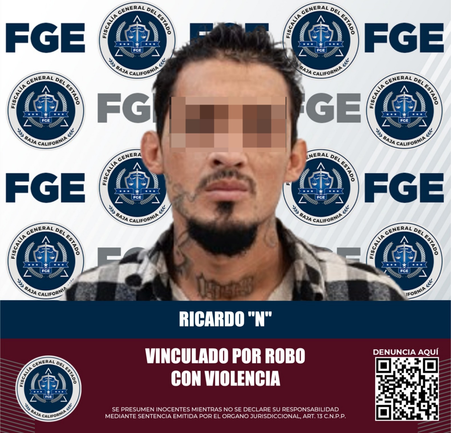 MEXICALI, BAJA CALIFORNIA. - La Fiscalía Regional de Mexicali, a través de la Unidad de Investigación de Robos Poniente y Detenidos Poniente, logró en audiencias por separado, la vinculación de un hombre acusado de participar en diversos robos con violencia a establecimientos comerciales.