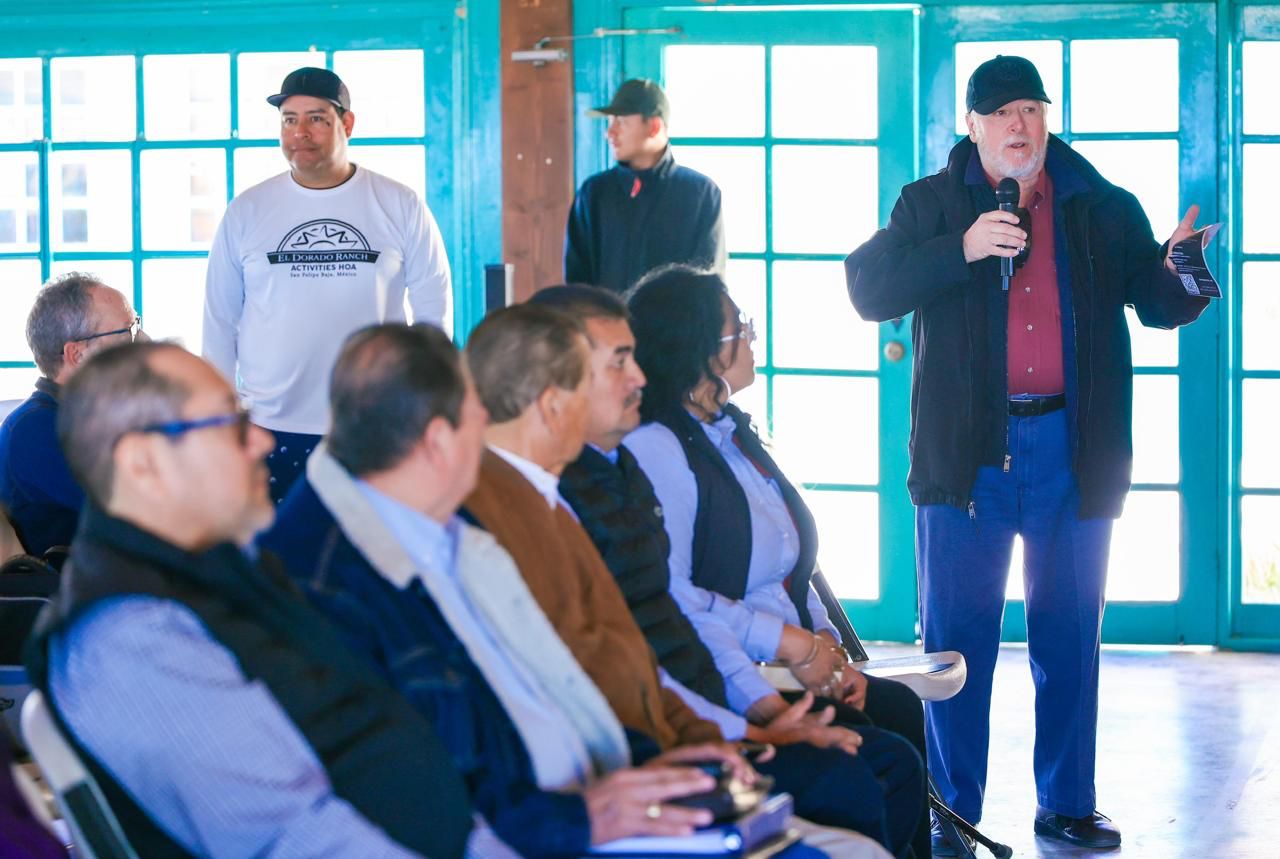 En ese contexto, el Fiscal Regional de San Felipe, Miguel Ángel Pérez Rojas; la Directora de Atención Ciudadana y Justicia Alternativa Penal, Sonia López Urrea; la subdirectora de Atención Ciudadana y Justicia Alternativa Penal Zona Norte Lizeth Jazmín Torres Andrade; el Coordinador del Centro de Atención Tecnológica (CAT), Jesús Villalpando; el Director Estatal del Programa Fiscal Enlace Contigo, Benito Velázquez y el Coordinador de "Fiscal Enlace Contigo", José Pedro Leyva, se reunieron con residentes del Rancho El Dorado.