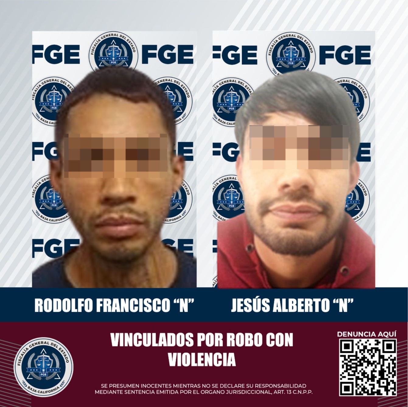 MEXICALI, BAJA CALIFORNIA. - Dos hombres presuntamente relacionados en robos contra comercios fueron vinculados a proceso con base en los elementos de prueba presentados por la Fiscalía Regional de Mexicali, a través de las Unidades de Investigación de Robos Poniente y Robos Oriente.