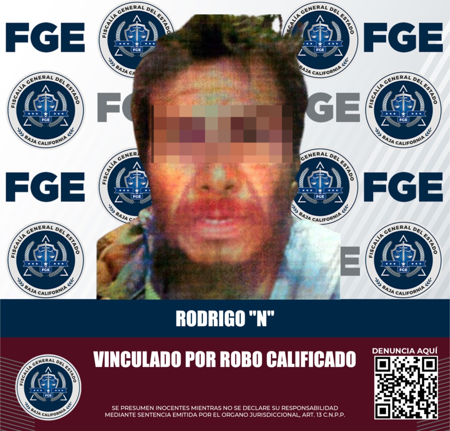 TIJUANA, BAJA CALIFORNIA. - La Fiscalía Regional de Tijuana, gracias a la labor de investigación de la Unidad Especializada en Robos Zona La Mesa, logró obtener la vinculación a proceso de Rodrigo “N”, acusado de cometer robo calificado a comercio abierto al público, ejecutado con violencia.