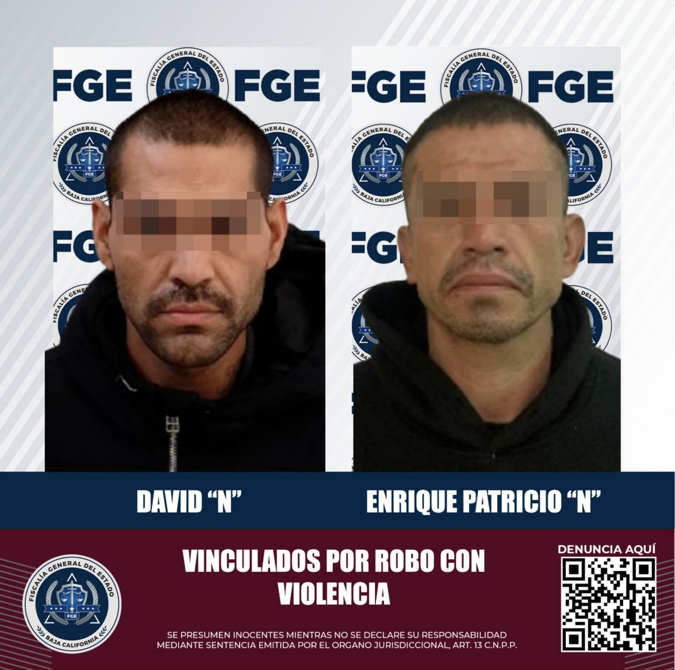 MEXICALI, BAJA CALIFORNIA. - La Fiscalía Regional de Mexicali, a través de la Unidad de Investigación de Delitos con Detenidos Poniente y Oriente, obtuvo la vinculación a proceso en contra de dos sujetos acusados de robar con violencia a establecimientos comerciales.