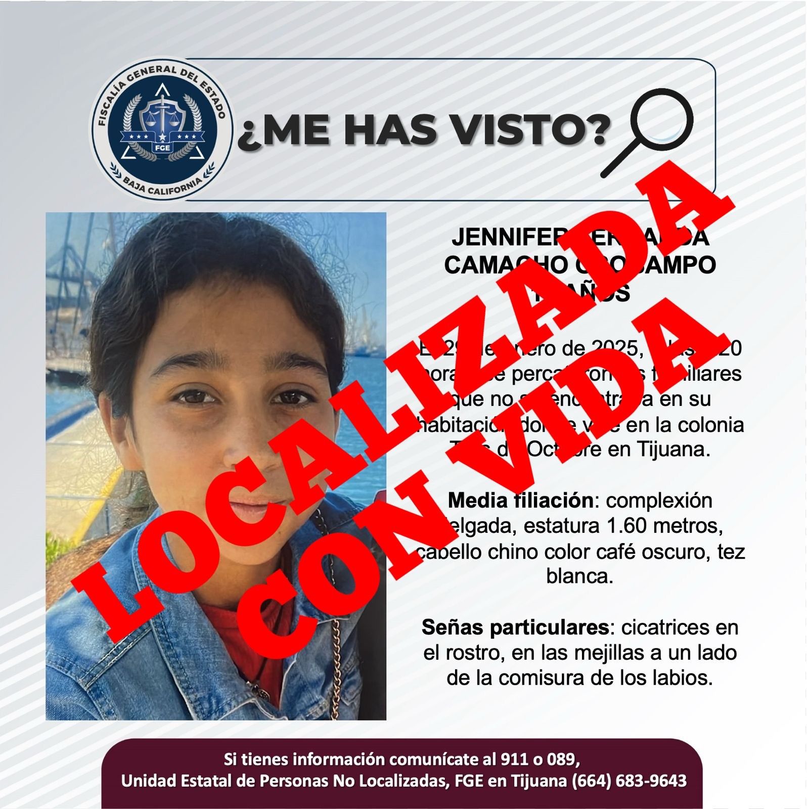TIJUANA, BAJA CALIFORNIA. - La Fiscalía General del Estado (FGE), a cargo de la Dra. Ma. Elena Andrade Ramírez, informa que, gracias a la colaboración de la Fiscalía de Puebla, diversas autoridades y a la oportuna actuación de los elementos de la Fiscalía Especializada en la Investigación de Personas Desaparecidas, se logró el rescate exitoso de una menor de 15 años de edad que había sido reportada como desaparecida en la ciudad de Tijuana, el día 29 de enero de 2025.
