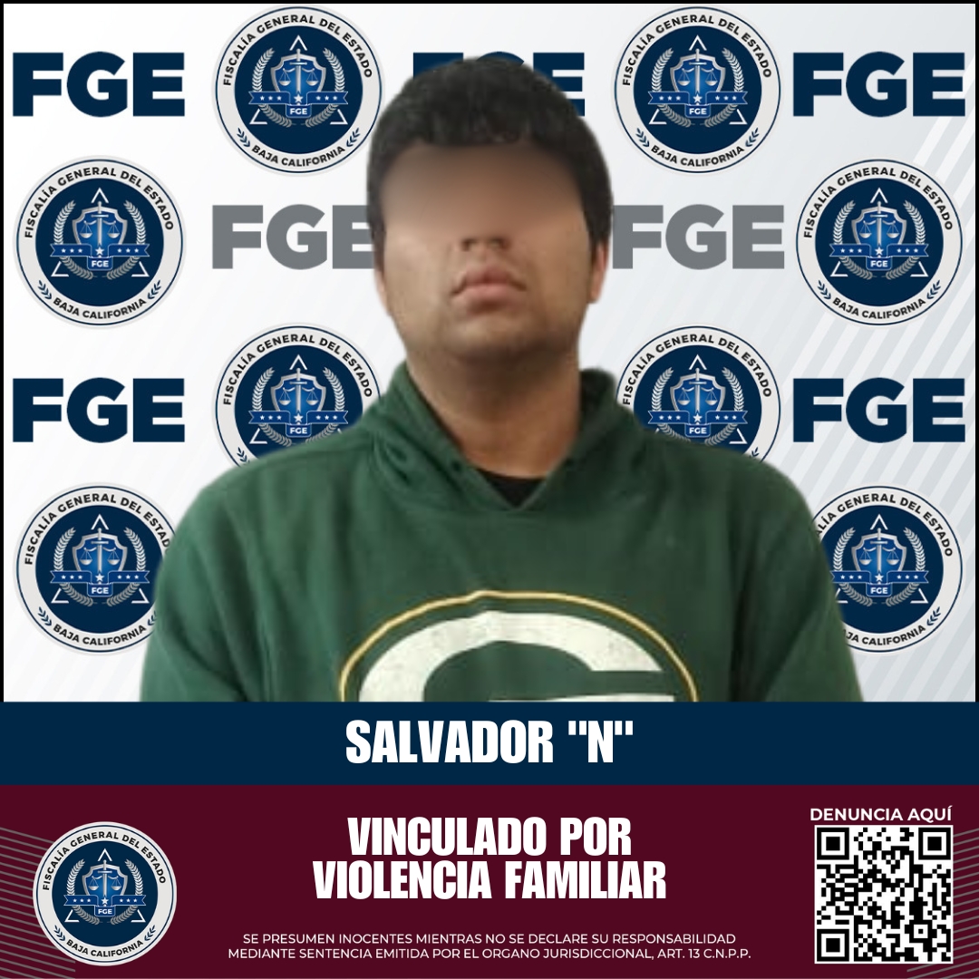 ENSENADA, BAJA CALIFORNIA. - La Fiscalía Regional de Ensenada logró vincular a proceso a un individuo identificado como Salvador “N”, presunto responsable de los delitos de violencia familiar y lesiones calificadas. Como resultado de esta vinculación, se le ha impuesto una medida cautelar de prisión preventiva justificada.