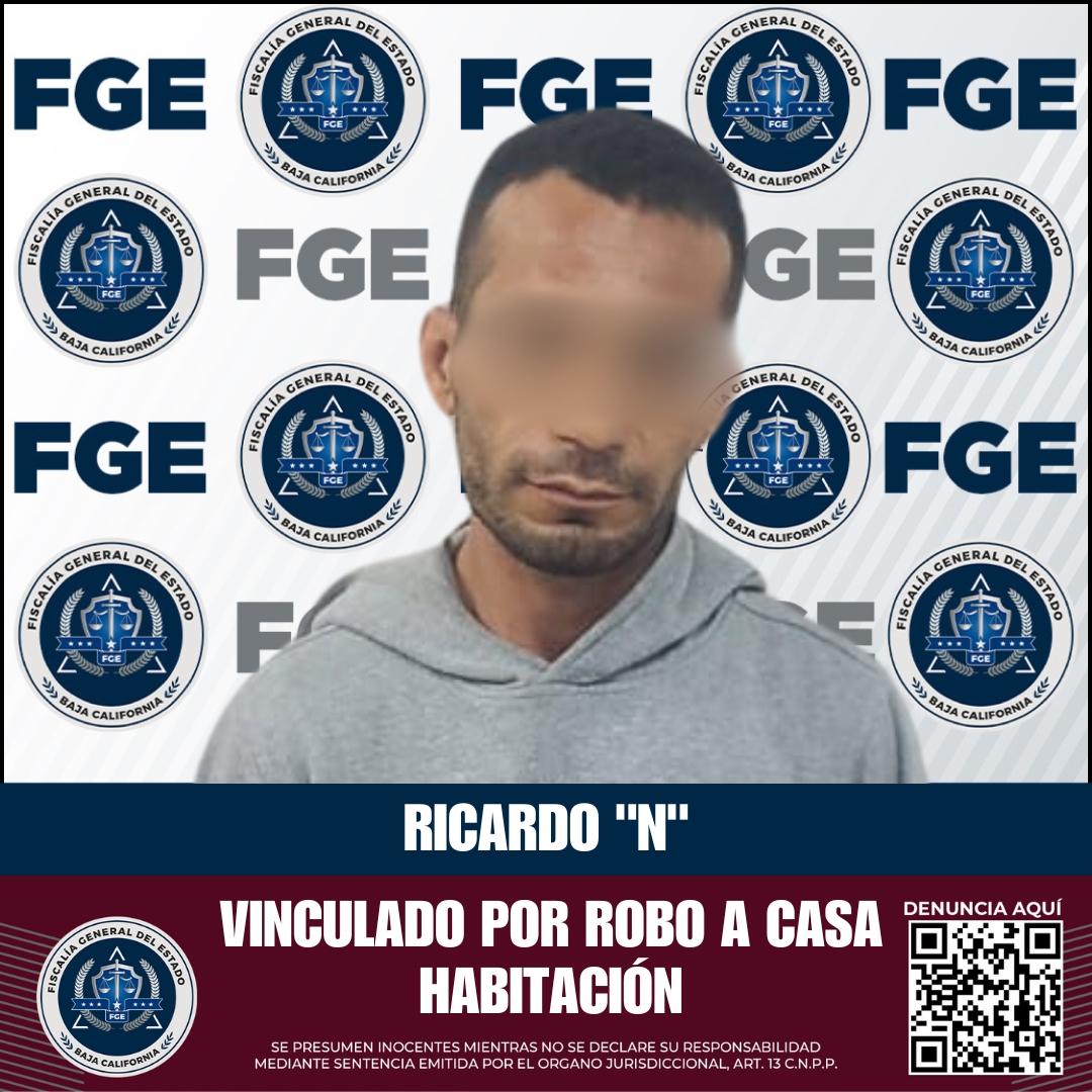 SAN QUINTÍN, BAJA CALIFORNIA. - La Fiscalía Regional de San Quintín ha logrado la vinculación a proceso de Ricardo “N”, por su probable responsabilidad en el delito de robo en casa habitación. Este ilícito se habría cometido el 11 de marzo de 2024 en un domicilio de la colonia Olivos, en Camalú.