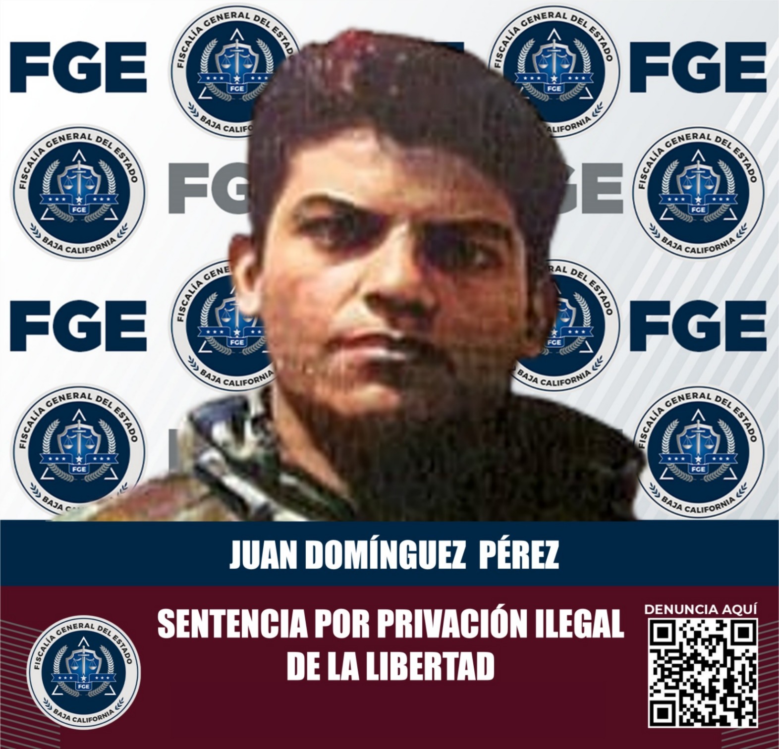 TIJUANA, BAJA CALIFORNIA. - La Fiscalía General del Estado de Baja California (FGEBC), a través de la Fiscalía Regional de Tijuana, obtuvo una sentencia de 12 años, 4 meses y 15 días de prisión contra Juan Domínguez Pérez, por su responsabilidad en los delitos de privación ilegal de la libertad, robo calificado cometido por dos o más personas de noche y robo de vehículo con violencia.