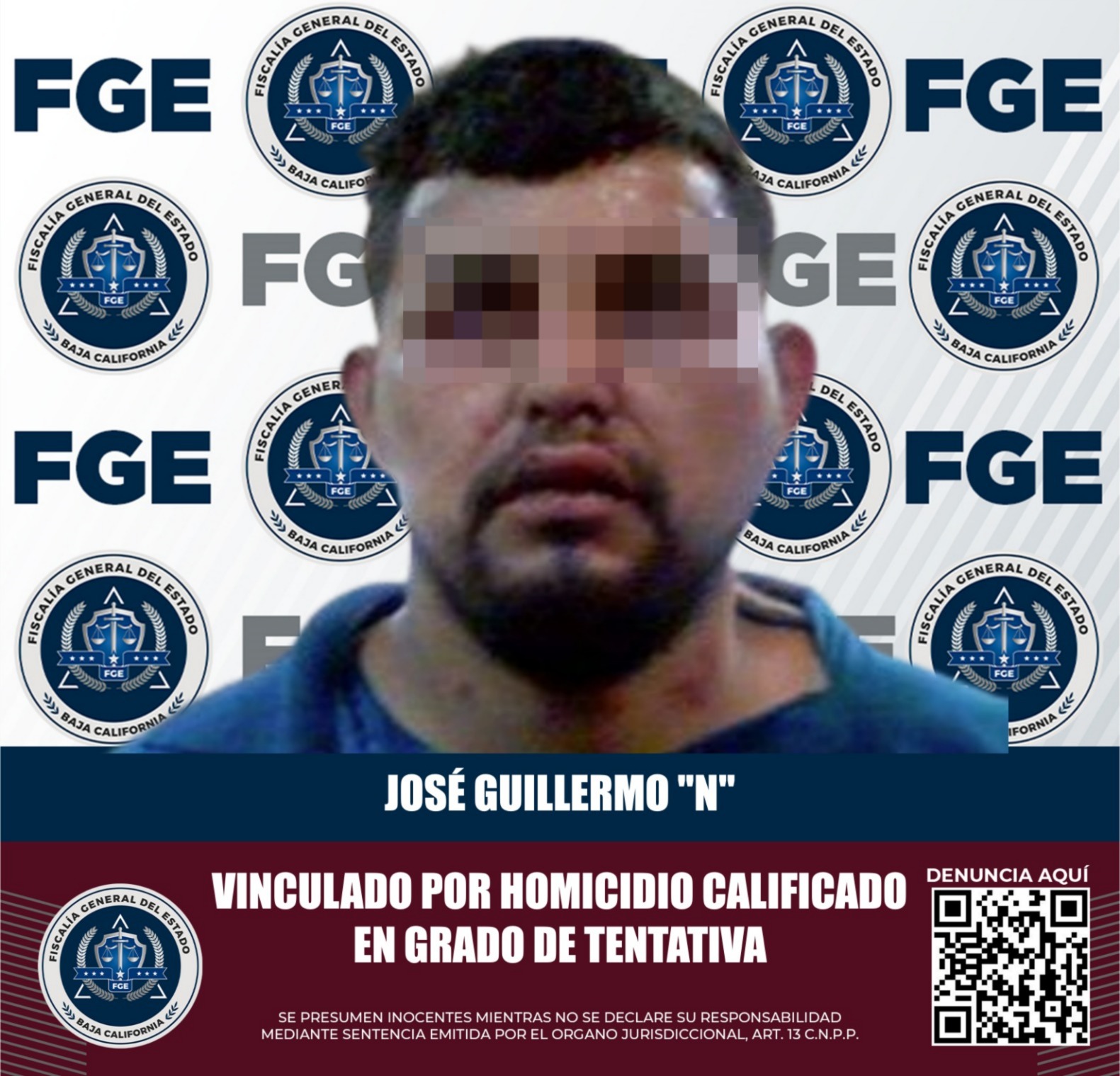 MEXICALI, BAJA CALIFORNIA. - La Fiscalía General del Estado (FGE), a través de la Fiscalía Especializada en Delitos Contra la Vida, logró que un juez vinculase a proceso a José Guillermo “N” por su presunta responsabilidad en el delito de homicidio calificado en grado de tentativa.