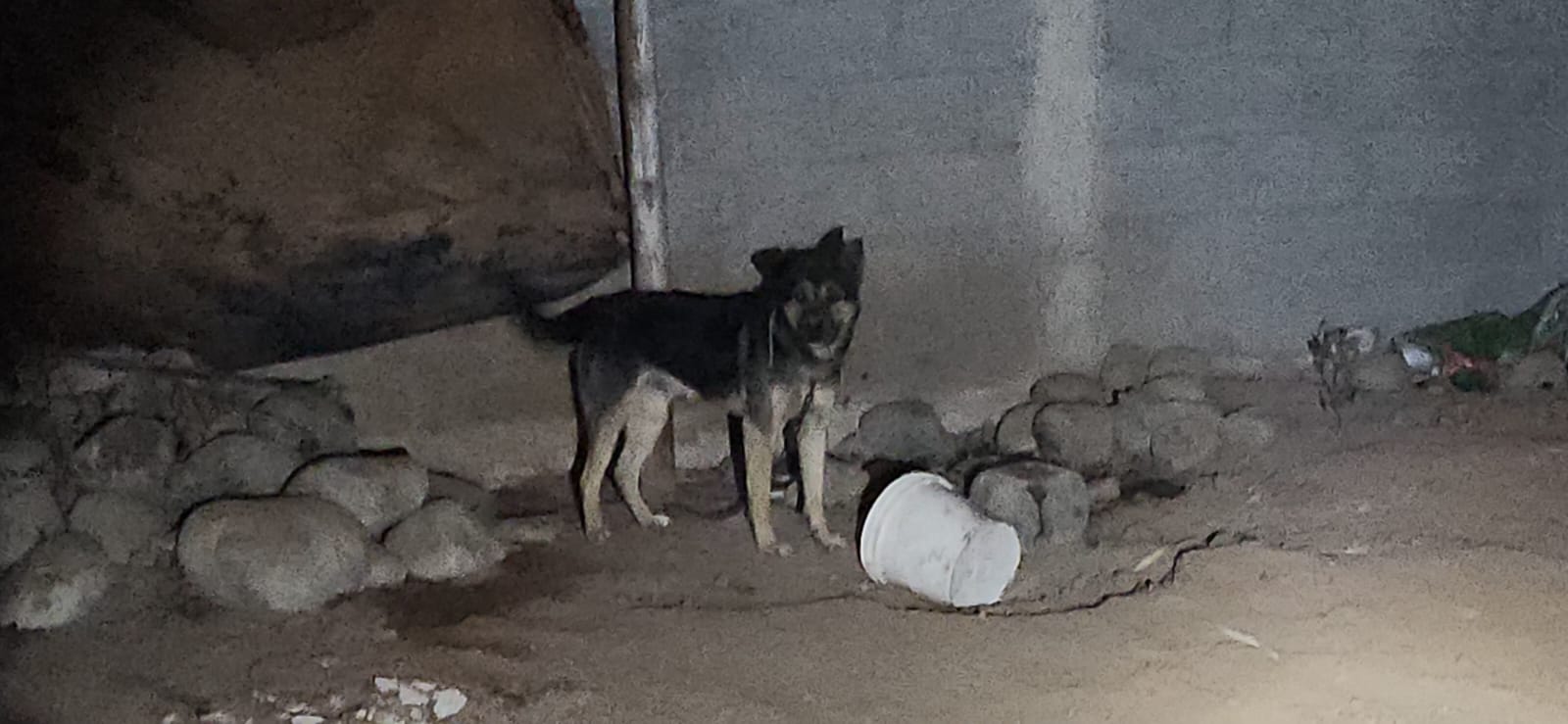 Durante la inspección del lugar, se localizó un canino de color negro con café, de ocho meses de edad, de raza criolla, el cual presentaba signos de desnutrición y se encontraba amarrado con un lazo, sin acceso a agua, sombra ni alimento.