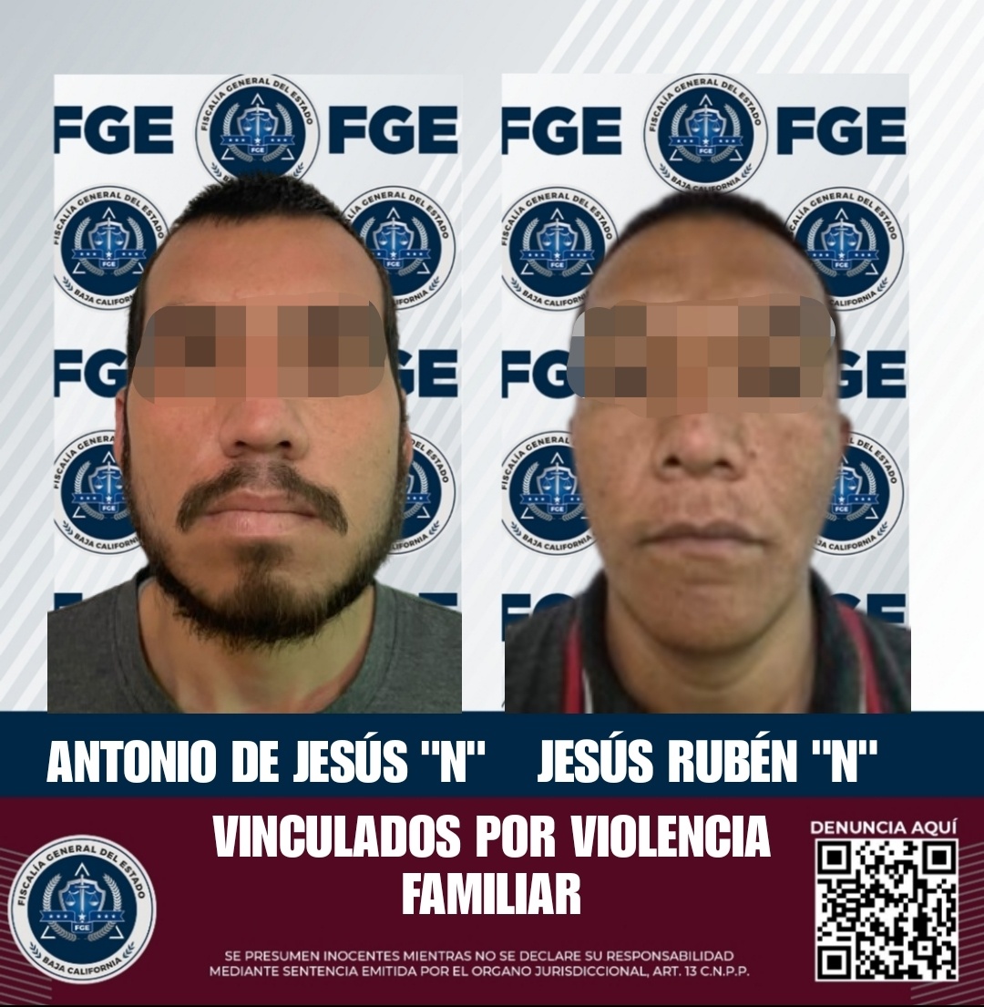 MEXICALI BAJA CALIFORNIA. - Por su presunta responsabilidad en el delito de violencia familiar, la Fiscalía Regional de Mexicali, a través del trabajo realizado por la Unidad de Investigación con Detenidos Oriente, la vinculación de dos hombres.