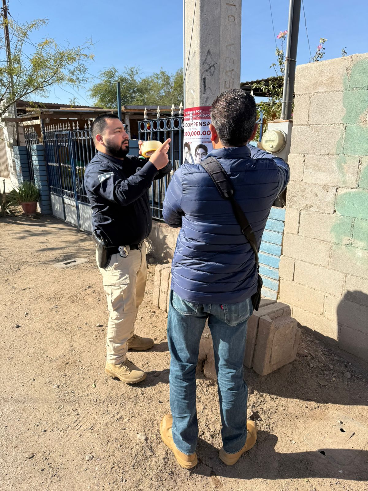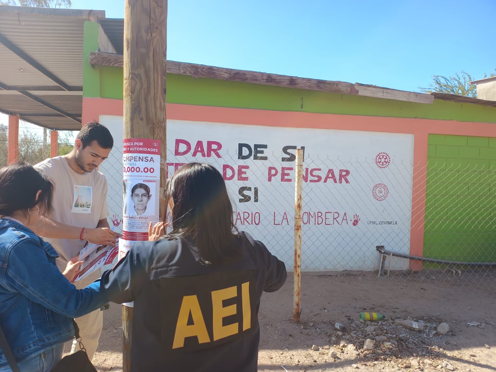 Durante las diligencias, se distribuyeron carteles en puntos estratégicos de las colonias Xochimilco, Solidaridad, Río Nuevo y Primera Sección, en lugares como el desayunador Uredi, la Casa Migrante, y el Comedor Comunitario, con el fin de recabar datos que fortalezcan las investigaciones y contribuyan al esclarecimiento de la localización de las víctimas.