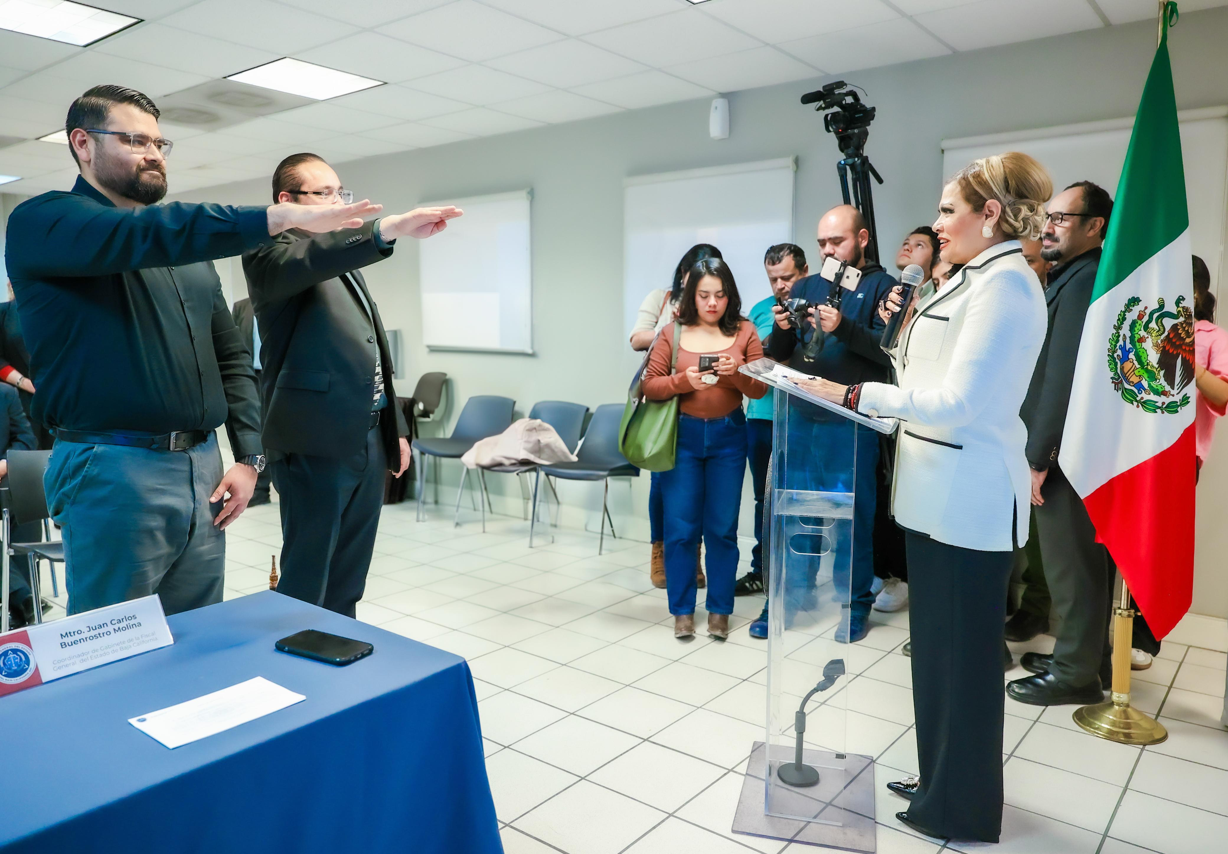 MEXICALI, BAJA CALIFORNIA. - En una ceremonia realizada en las instalaciones del CIAC, la Fiscal General del Estado, Dra. Ma. Elena Andrade Ramírez, tomó protesta a Josué Jiménez Noyola como nuevo titular del Centro de Control, Comando, Comunicación, Cómputo y Contacto Ciudadano (C5).