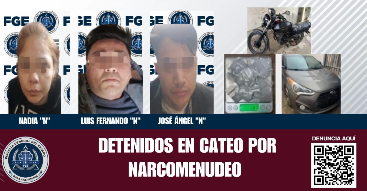 Durante la intervención, efectuada por el Ministerio Público y elementos de la Agencia Estatal de Investigación, adscritos a la Fiscalía Especializada en Narcomenudeo, resultaron detenidos José Ángel “N”, Luis Fernando “N” y Nadia “N”. Estos individuos fueron encontrados en posesión de 30 envoltorios de plástico con cierre hermético, que contenían metanfetamina, con un peso bruto estimado de 18.9 gramos.