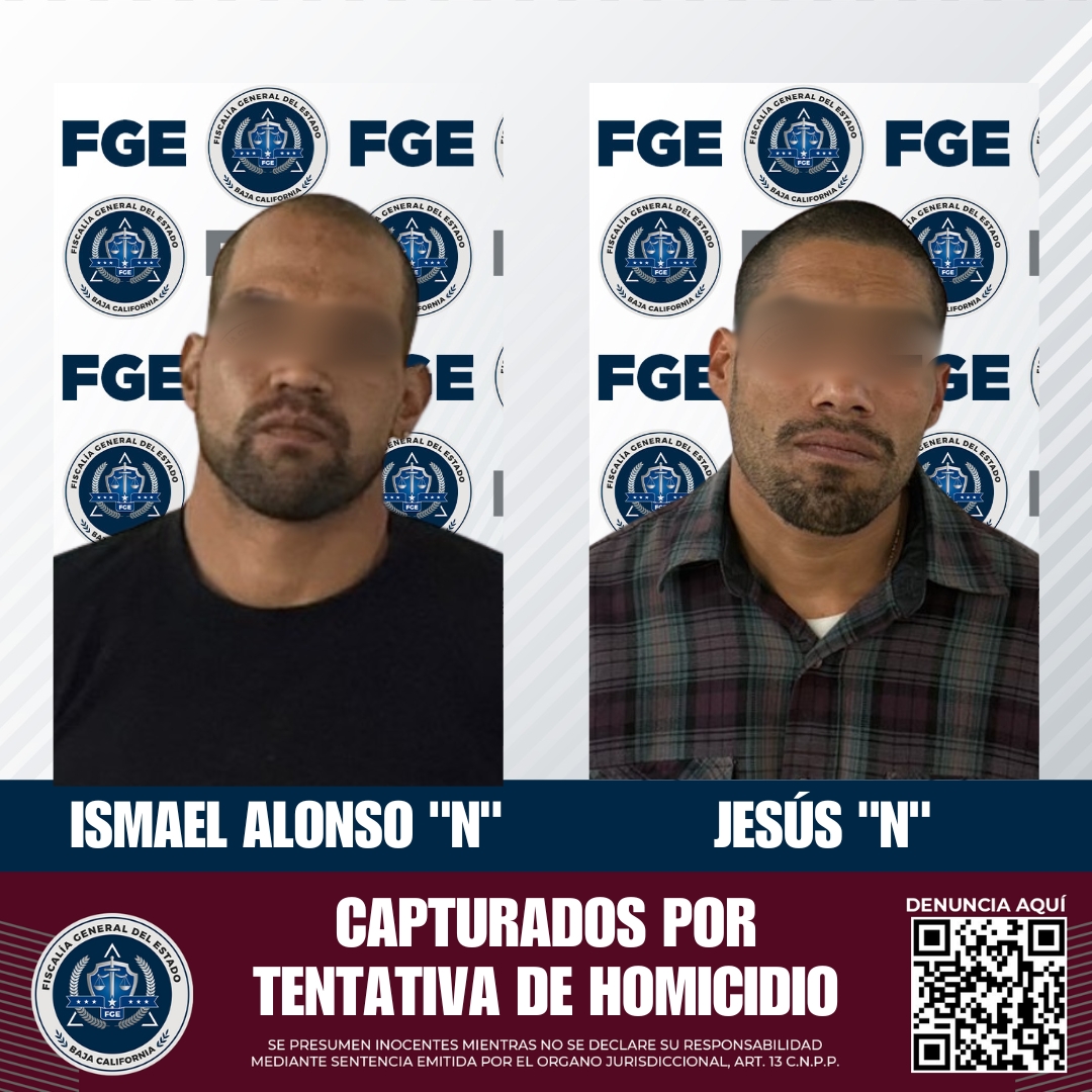 ENSENADA, BAJA CALIFORNIA. - La Fiscalía General del Estado, a través de la Fiscalía Especializada en Delitos Contra la Vida, ha logrado la vinculación a proceso y medida cautelar de prisión preventiva contra dos hombres por el delito de homicidio calificado en grado de tentativa.