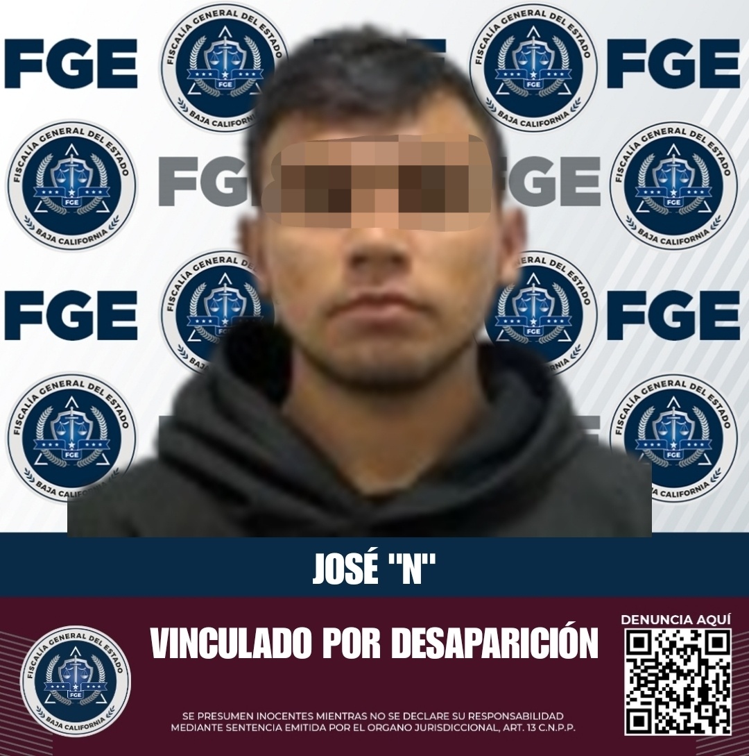TIJUANA, BAJA CALIFORNIA. - La Fiscalía General del Estado (FGE) continúa obteniendo resultados positivos en su estrategia contra el crimen, mediante la labor del Agente del Ministerio Público y los elementos policiales de la Unidad de Investigación y Persecución de Delitos de Desaparición Forzada y Desaparición Cometida por Particulares. A través de un trabajo coordinado, se logró la vinculación a proceso de José "N", alias "El Cheche", por el delito de Desaparición Cometida por Particulares Agravada.