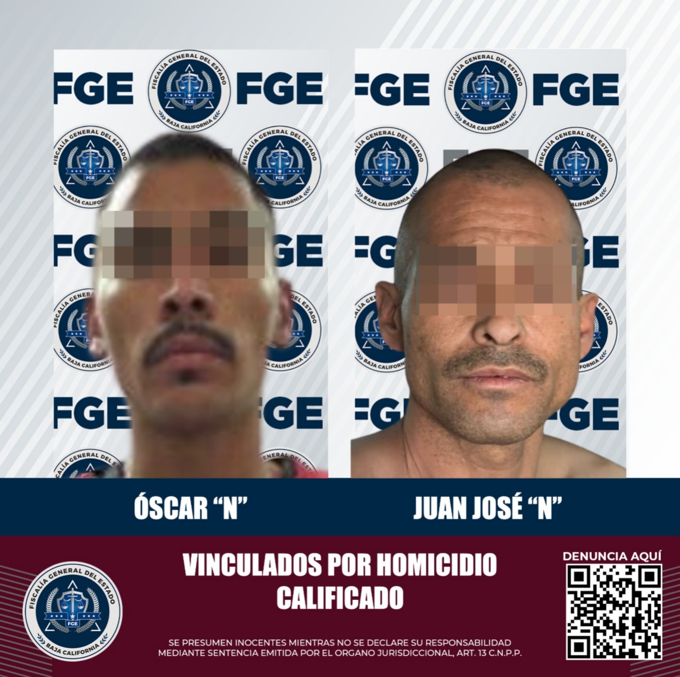 MEXICALI, BAJA CALIFORNIA. - La Fiscalía General del Estado, presentó ante el juez penal a dos hombres presuntamente implicados en el homicidio de un residente del fraccionamiento Valle de Puebla, ocurrido el 26 de julio de 2024.