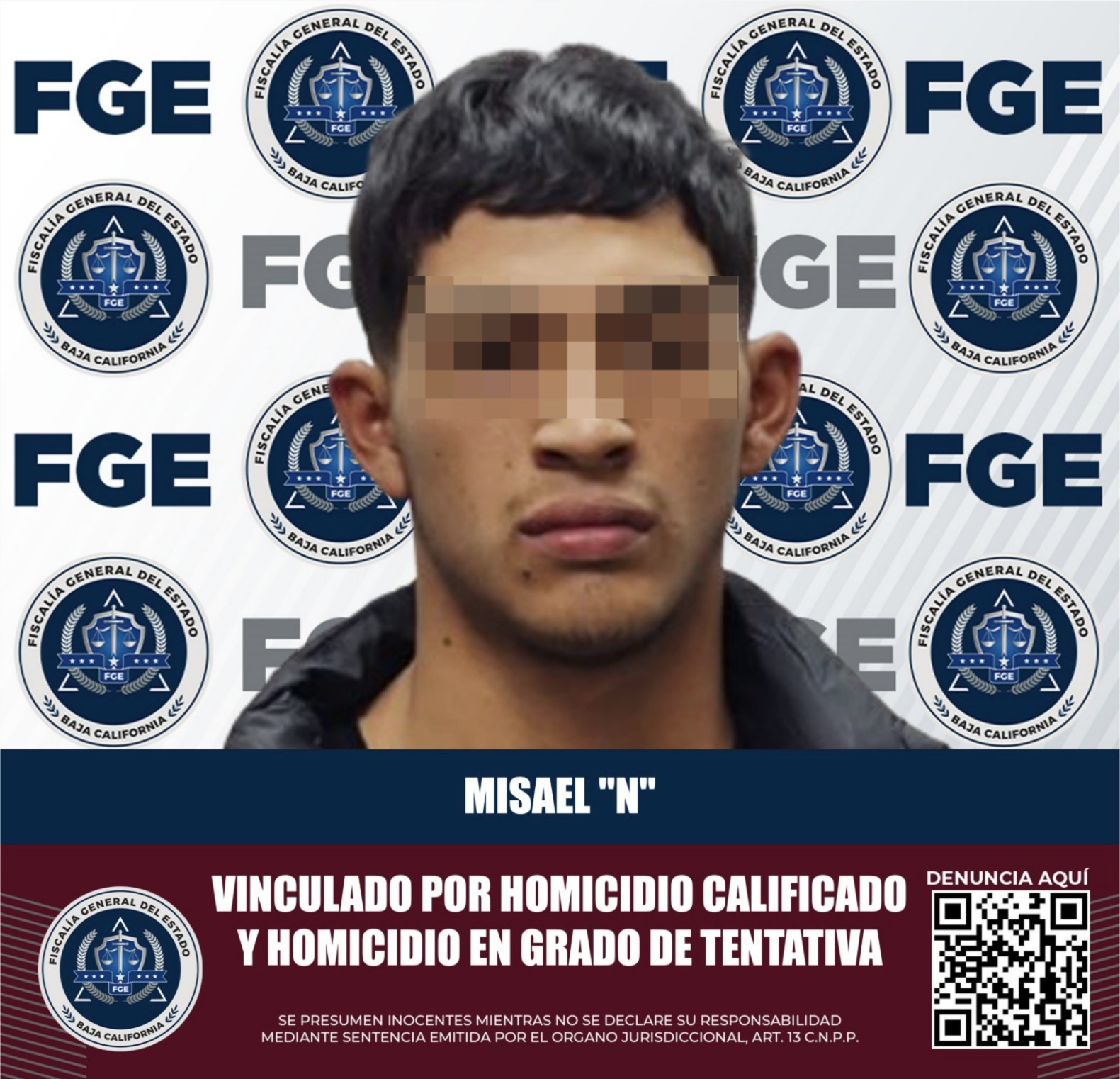 MEXICALI, BAJA CALIFORNIA. - La Fiscalía General del Estado (FGE) a través de la Fiscalía Especializada en Delitos contra la Vida presentó elementos de prueba que fueron suficientes para vincular a proceso a Misael “N” por los delitos de homicidio calificado ventaja y en grado de tentativa.