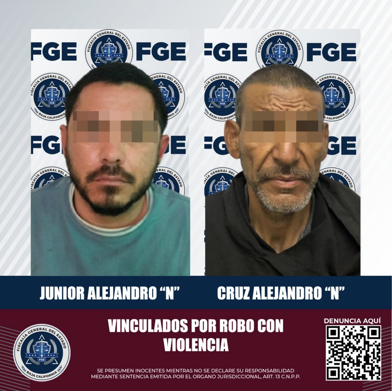 MEXICALI, BAJA CALIFORNIA. - La Fiscalía Regional de Mexicali, a través de la Unidad de Investigación de Delitos con Detenidos Oriente y Foránea de Guadalupe Victoria, logró la vinculación a proceso de dos sujetos acusados de perpetrar robos con violencia en establecimientos comerciales.