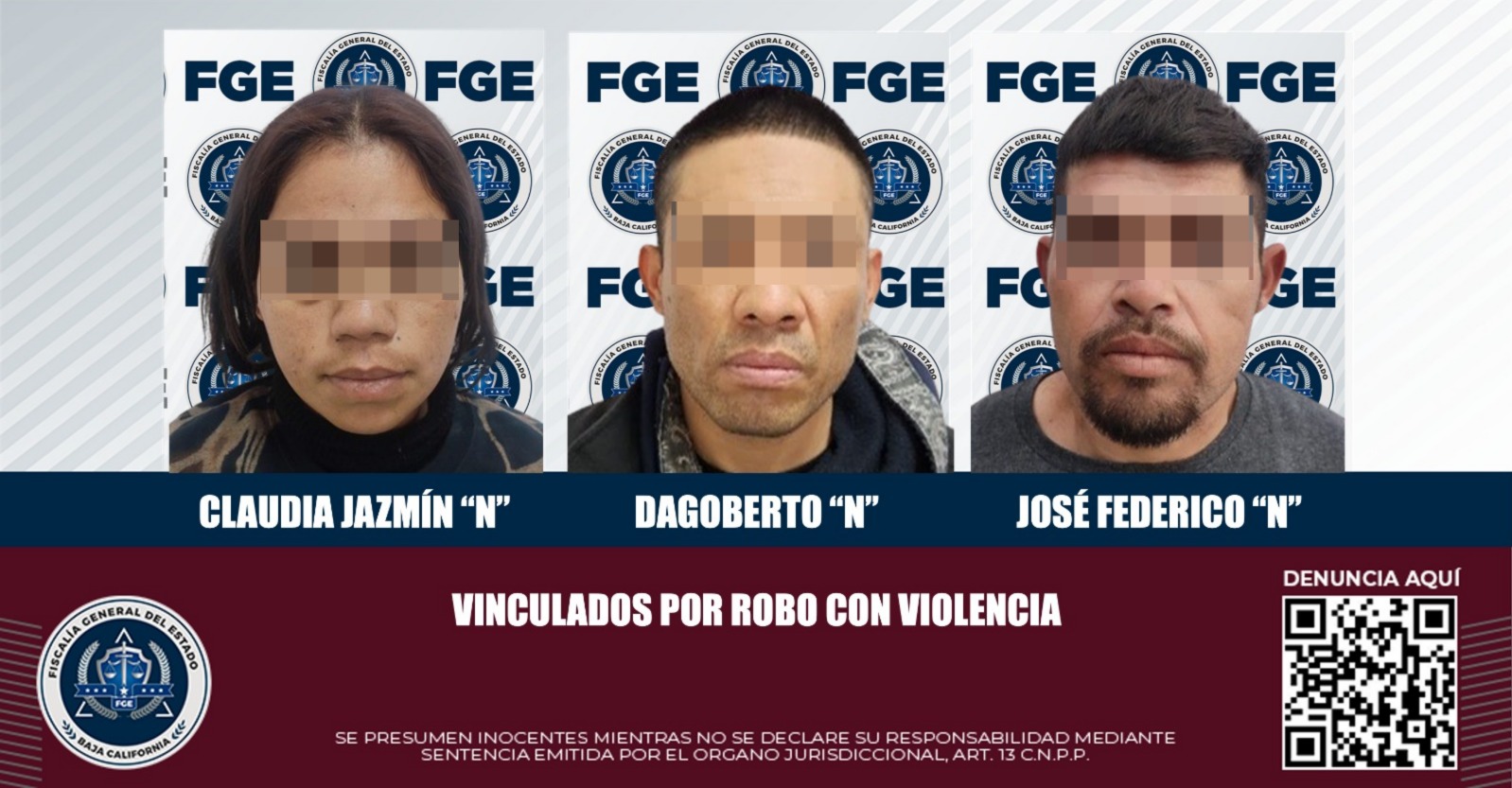 MEXICALI, BAJA CALIFORNIA. - Dos hombres y una mujer, relacionados en delitos de robo contra Oxxo, quedaron bajo proceso penal con base a las pruebas presentadas por la Fiscalía Regional de Mexicali, a través de la Unidad de Investigación de Robos Poniente.