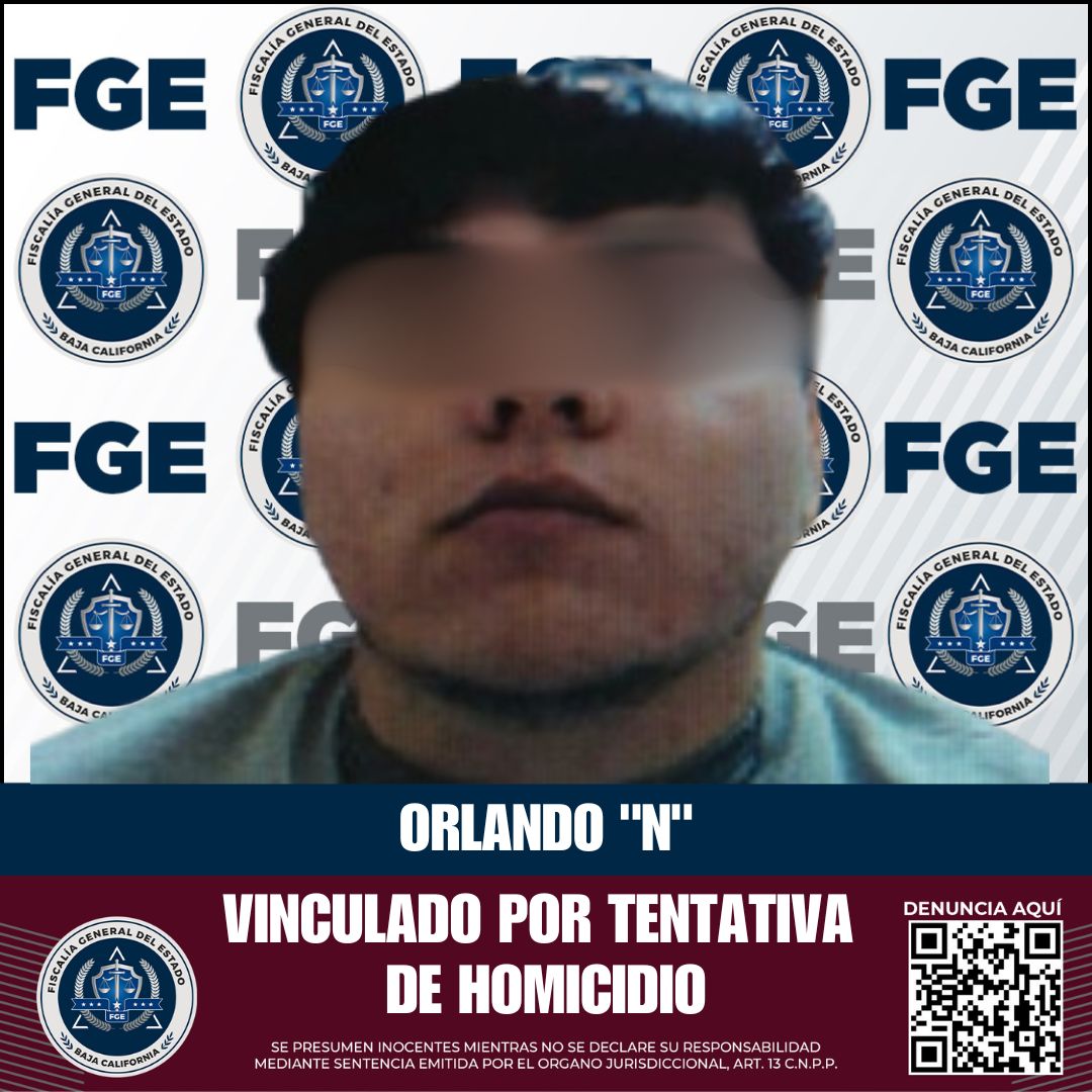 ENSENADA, BAJA CALIFORNIA. - La Fiscalía General del Estado de Baja California informa sobre la vinculación a proceso de un hombre identificado como Orlando "N", señalado de tentativa de homicidio en un incidente ocurrido el 29 de agosto de 2022 en la zona de El Bazar, Valle de la Trinidad, Ensenada.