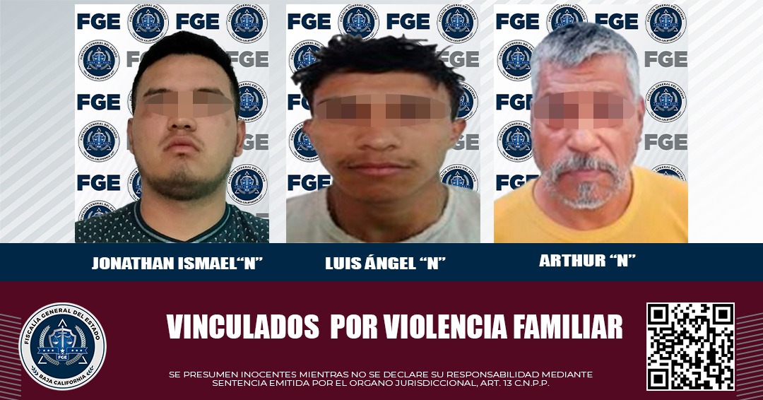 MEXICALI, BAJA CALIFORNIA. - Después de presentar las carpetas de investigación con elementos probatorios suficientes, la Fiscalía Regional de Mexicali, a través de las Unidades de Investigación con Detenidos Oriente y Detenidos Poniente, logró la vinculación a proceso de tres sujetos, acusados por el delito de violencia familiar.